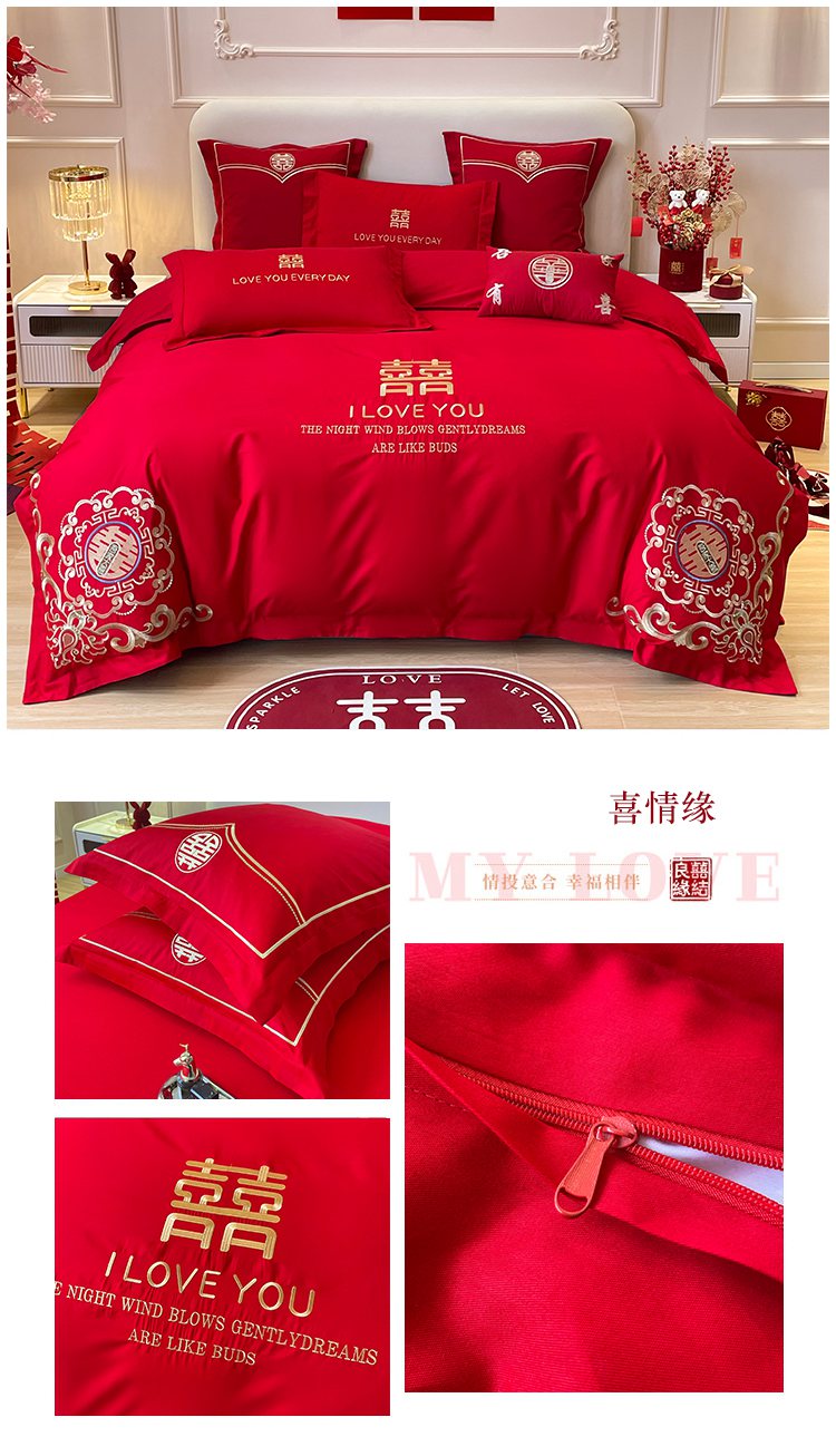 当前位置: 91家纺网 > 商品网购 > 床品套件 > 四件套 > 婚庆四件套 > 洽想家 2025新款亲肤棉磨毛刺绣婚庆四件套多件套 喜结连理(磨毛款)