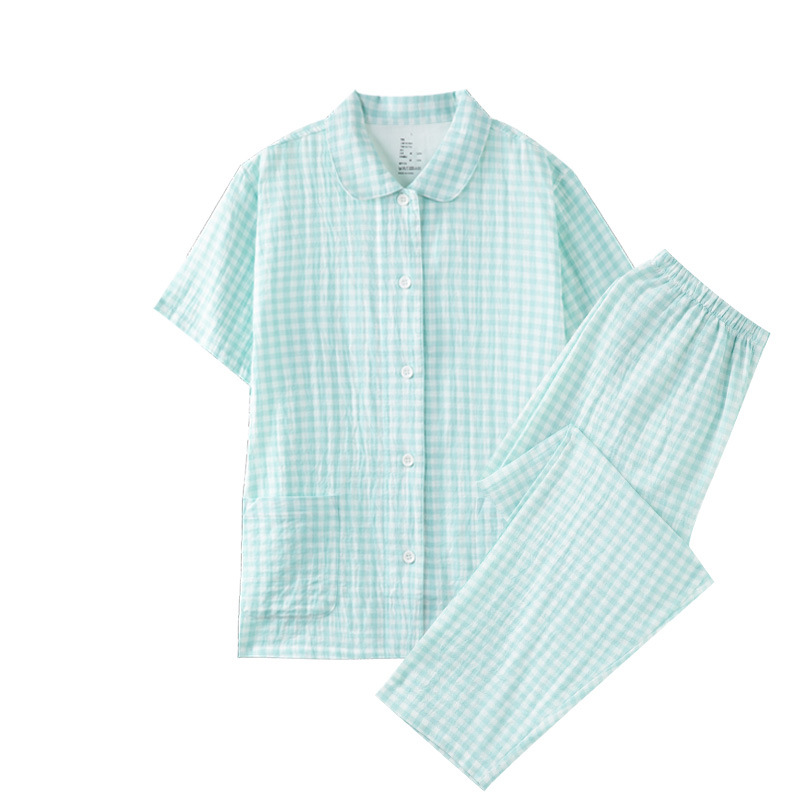 商品名称:(总)良品汇馆 2025新款日式无印水洗全棉纯棉双层纱睡衣良品女纯棉短袖长裤棉夏季情侣家居服