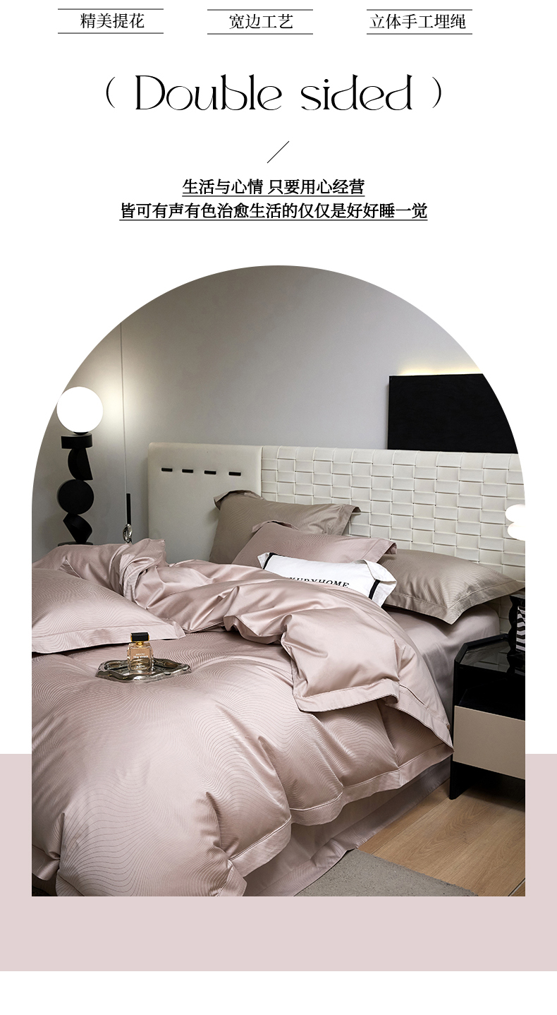 洽想家 2025新款长绒棉贡缎提花手工立体埋绳工艺四件套礼盒包装 欧若拉-血牙