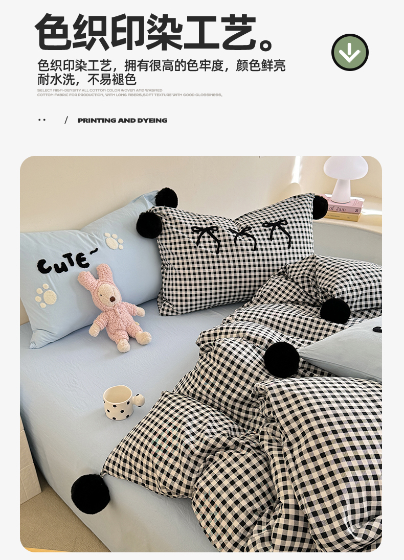 商品名称:多品家纺 2025新款超柔水洗棉奶油系毛球款单被套 卿本佳人