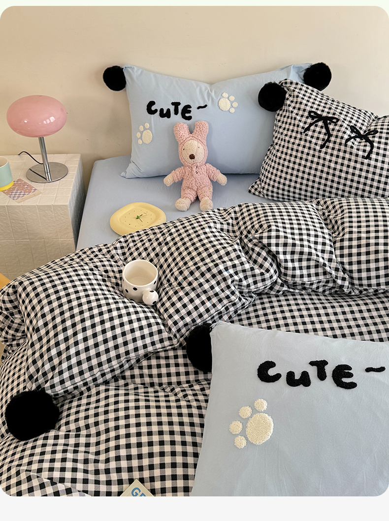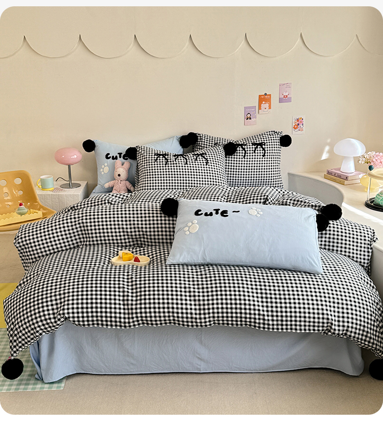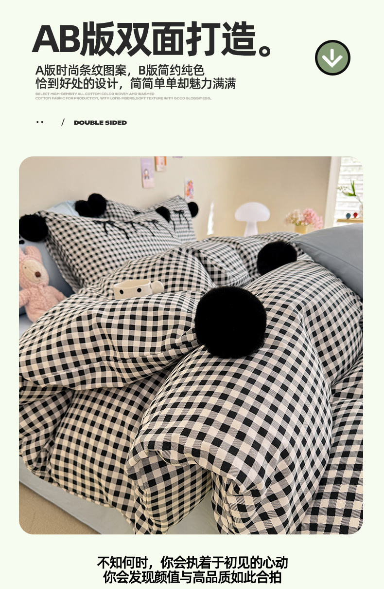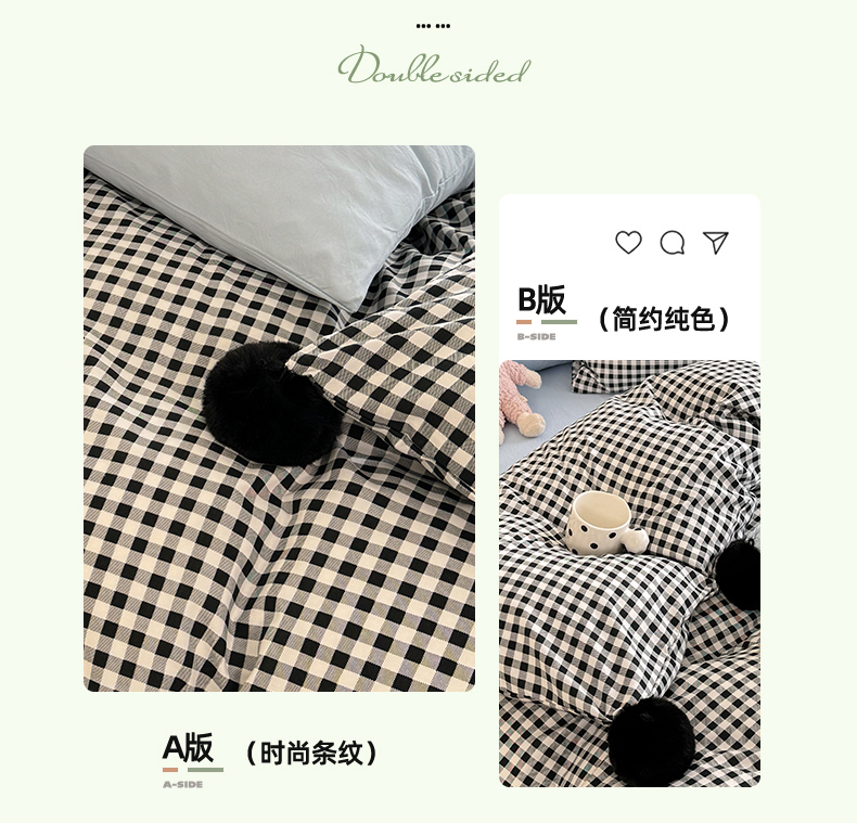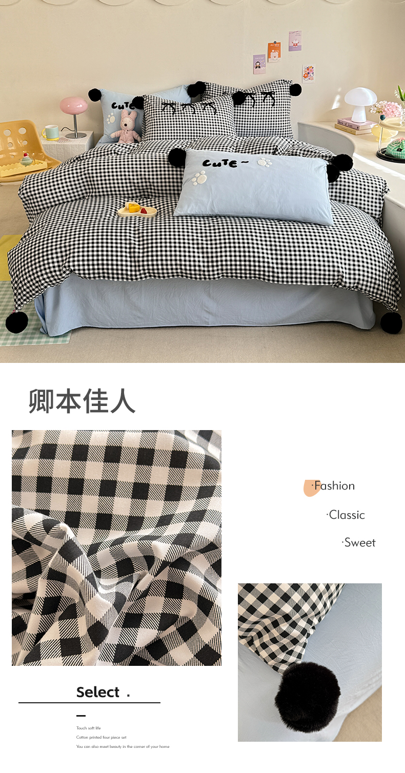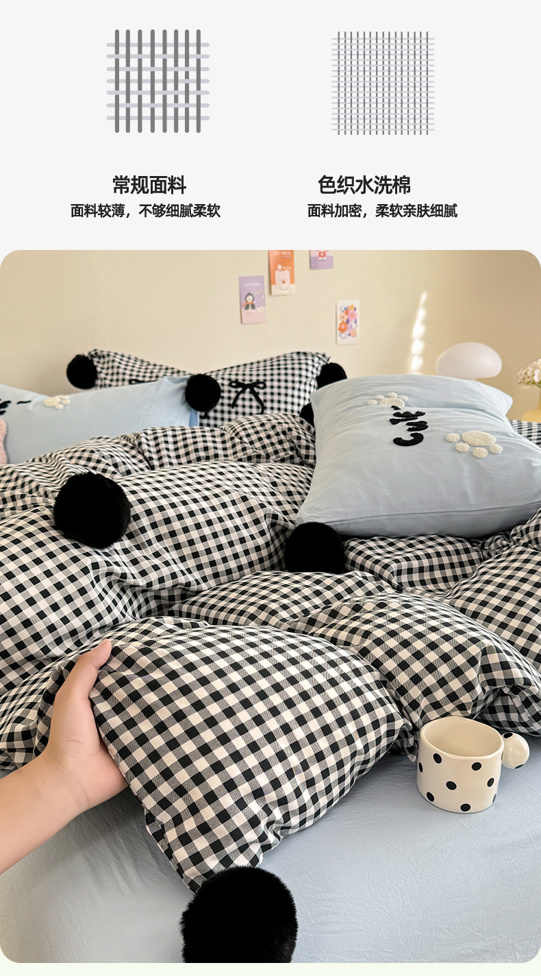 (总)多品家纺 2025新款简约复古风水洗棉格子四件套,黑小格+黑,柏林+黑,柏林+黑小格,黑小格+杏黄,时光+黑,时光+黑白格