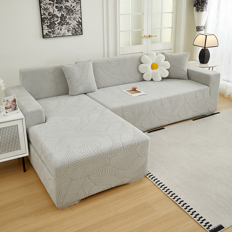丝绮鹿 2025新款雕花绒大叶子沙发套松紧款(贵妃图新) 米白