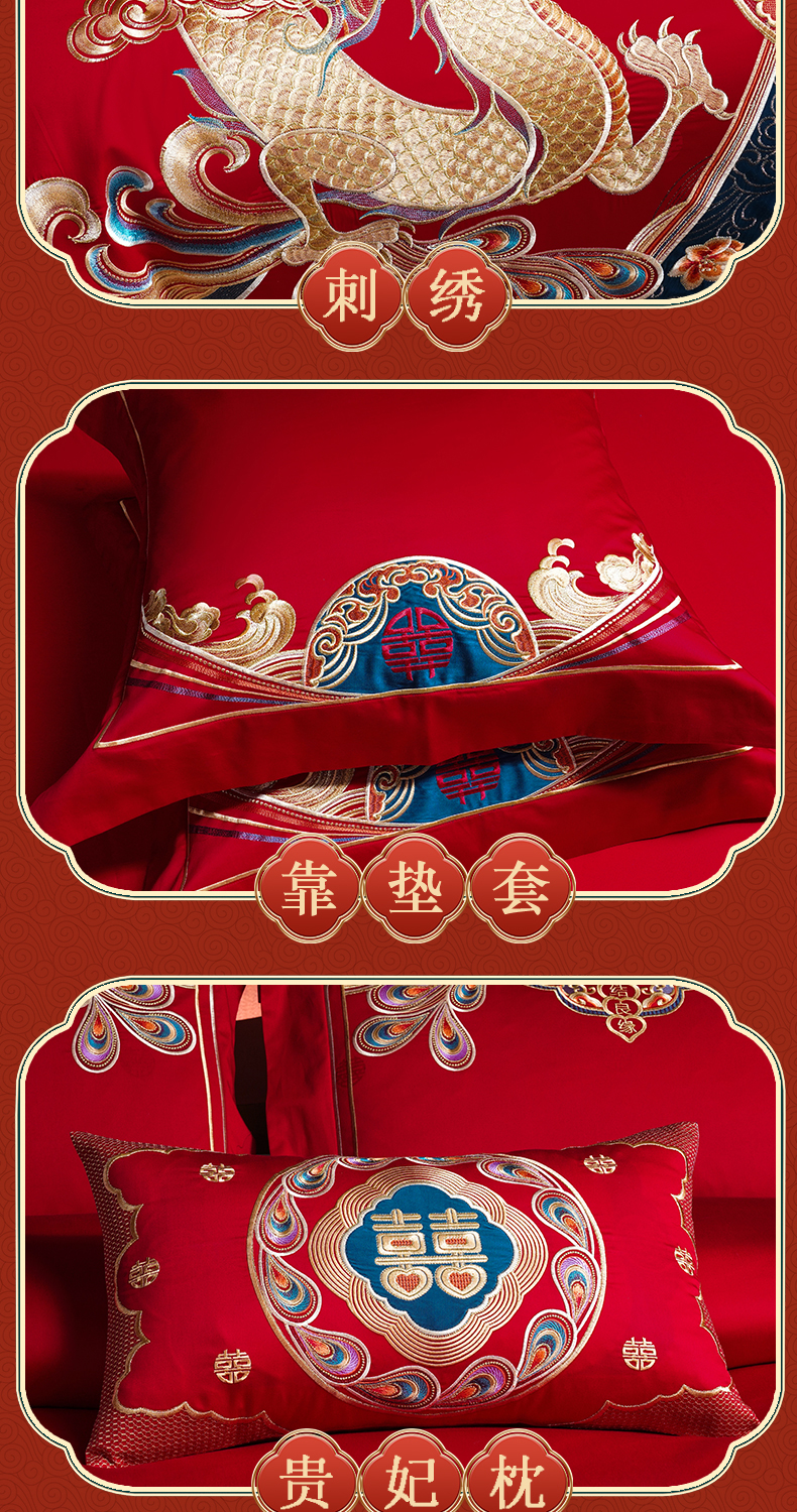 当前位置: 91家纺网 > 商品网购 > 床品套件 > 四件套 > 婚庆四件套 > 芊囍纺2026新款双面长绒棉高端婚庆提花重工刺绣四件套多件套系列 龙祥凤禧