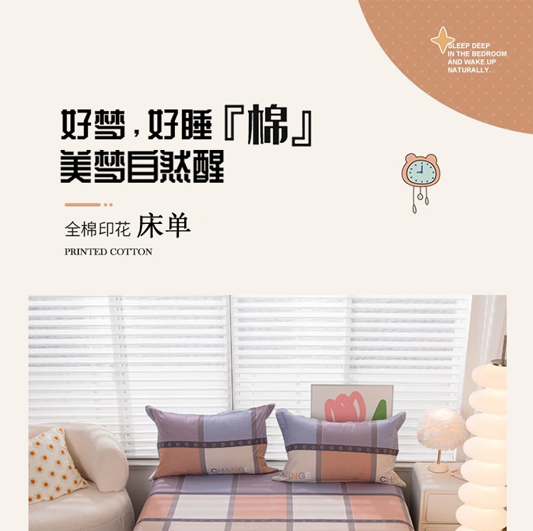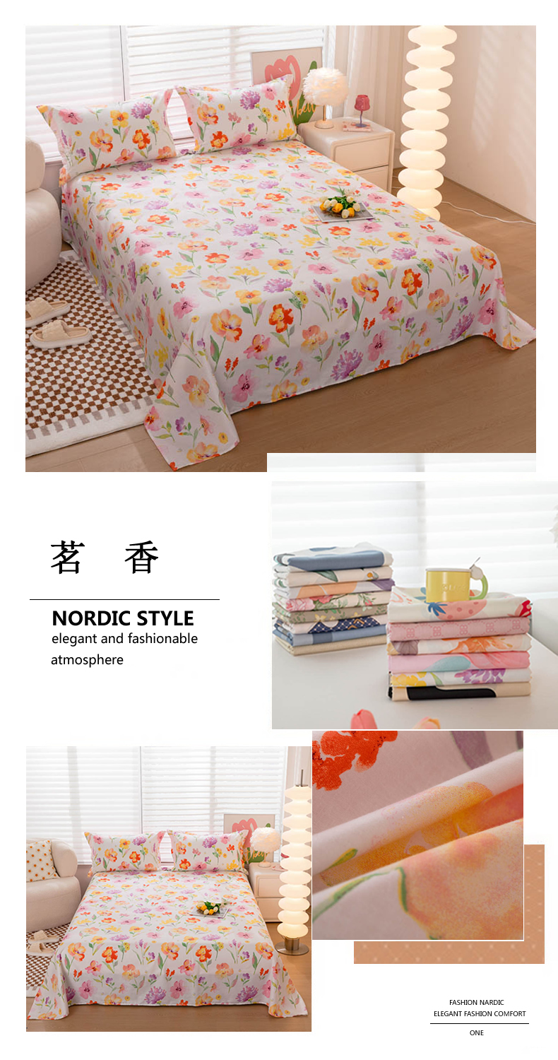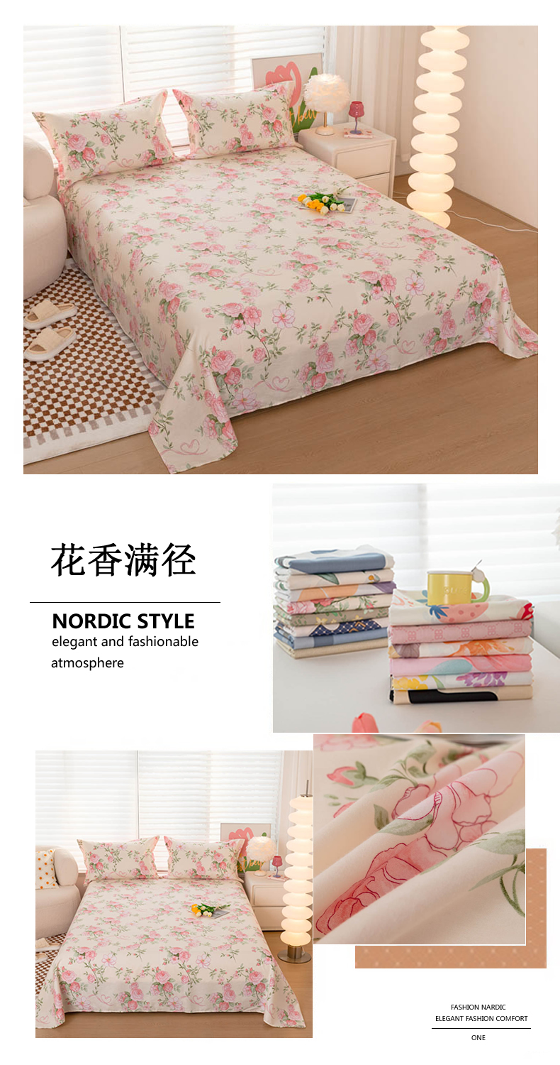 贝兰仙奴 2025春夏新款全棉纯棉12868印花单床单 床单单件 米可橘