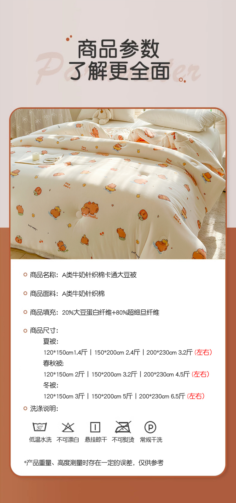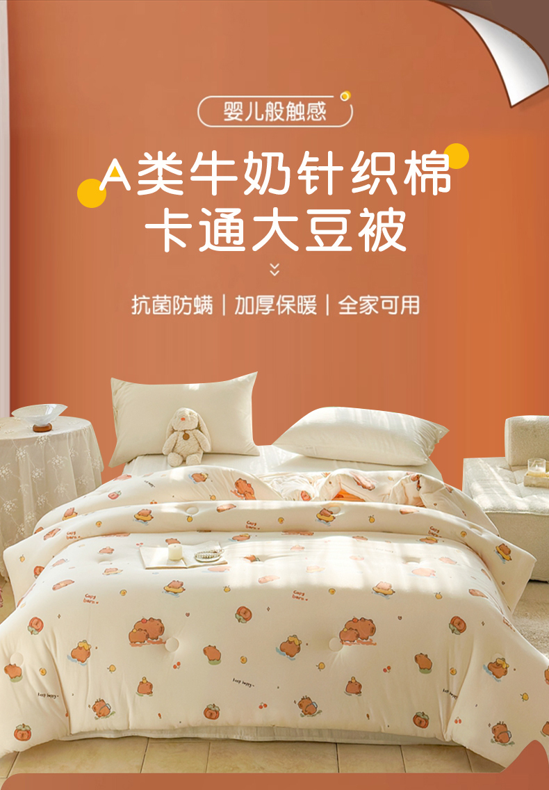 • 91家纺网 家纺一手货源 找家纺  提供买家秀爆款花型不断货A类母婴级宝宝被针织棉夏被空调被春秋被冬被大豆被被子被芯 卡皮巴拉【A类针织棉面料母婴可用】