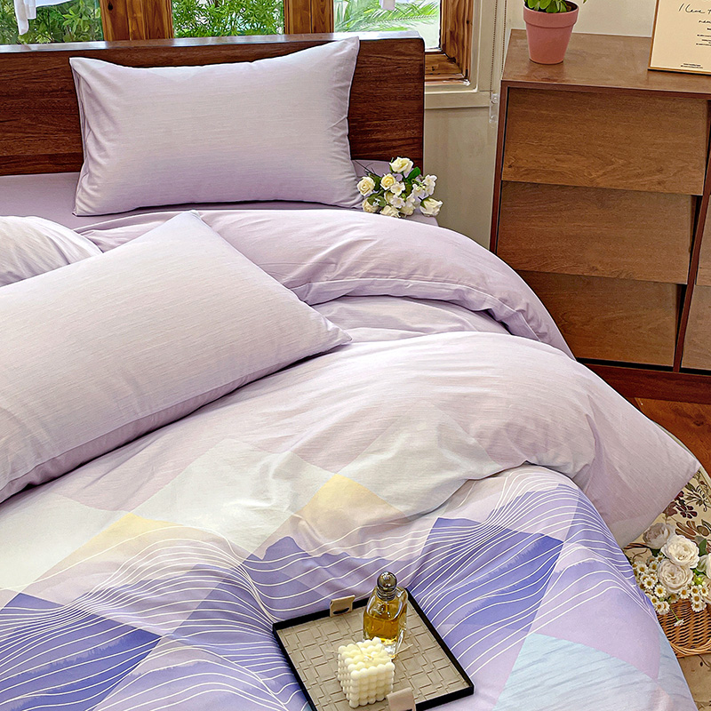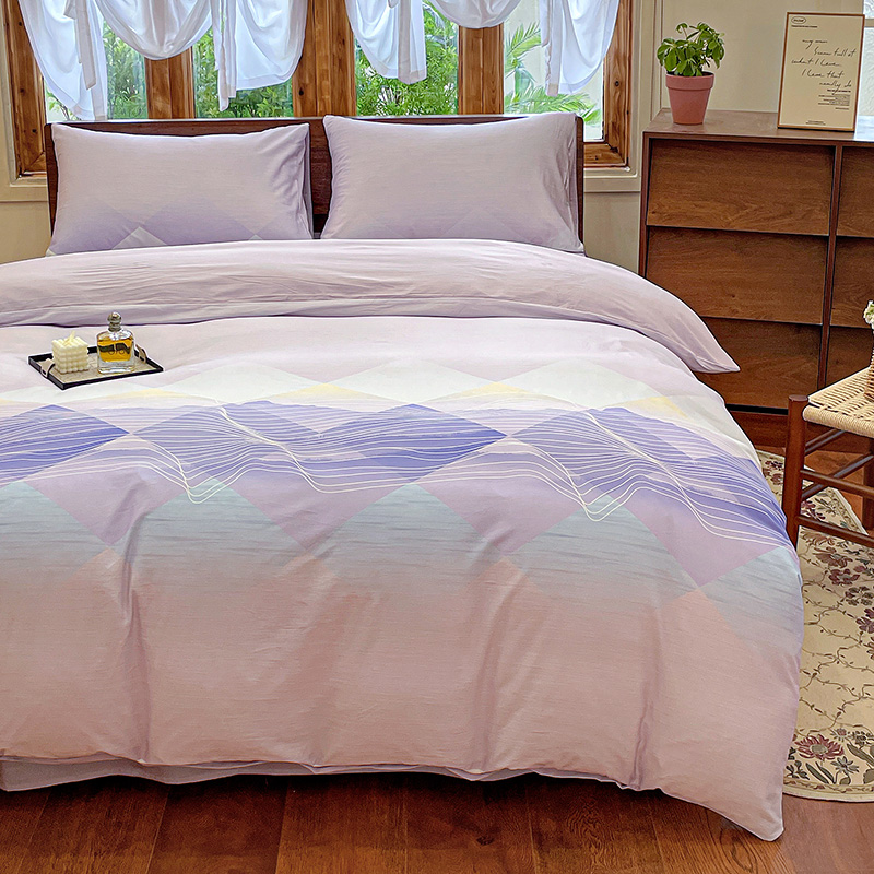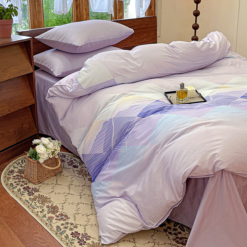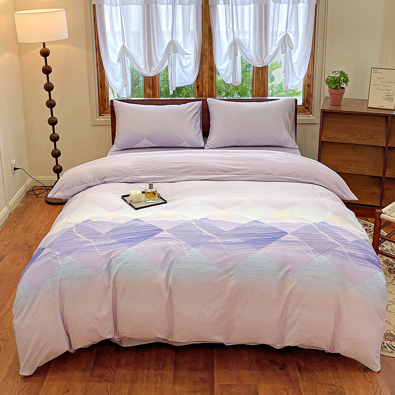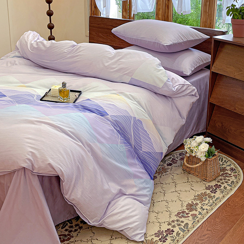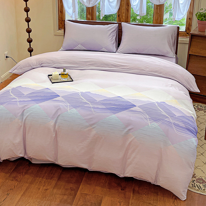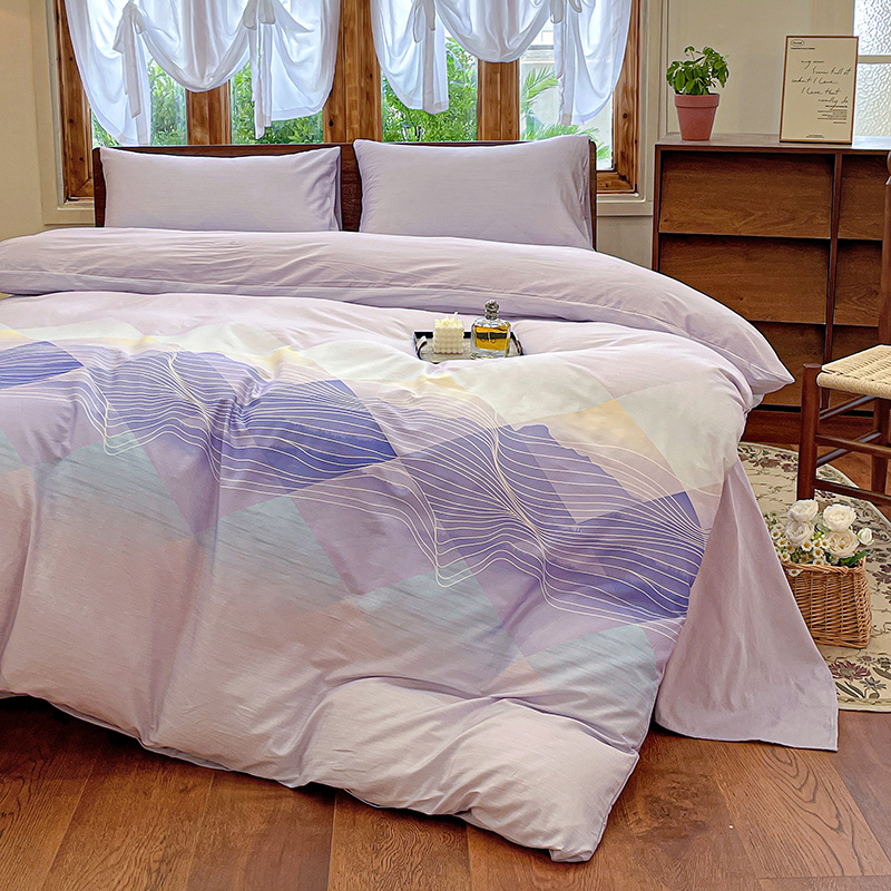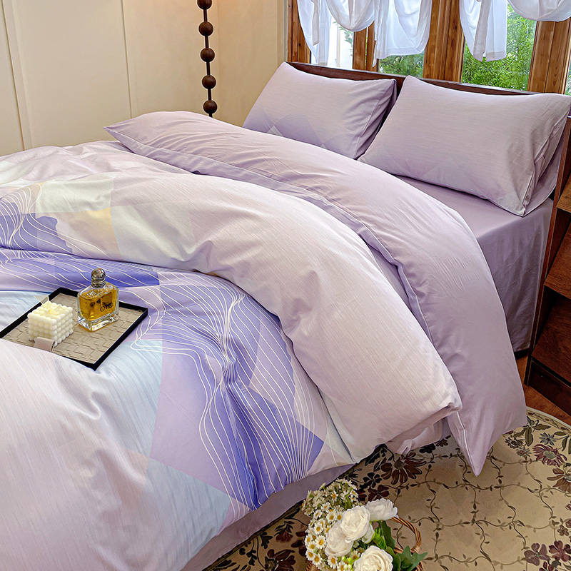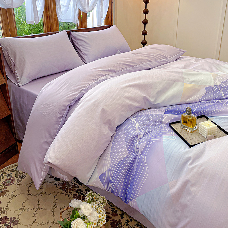 耀悦家纺 2025年60支纯棉印花四件套长绒棉被套床单 紫墨丹青