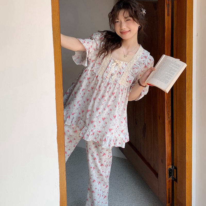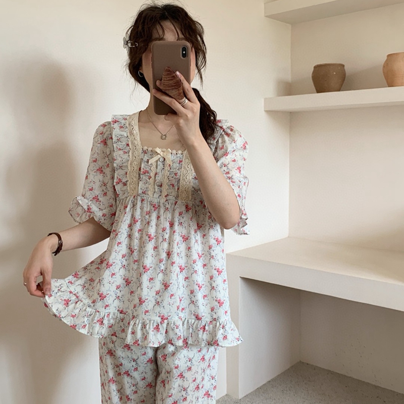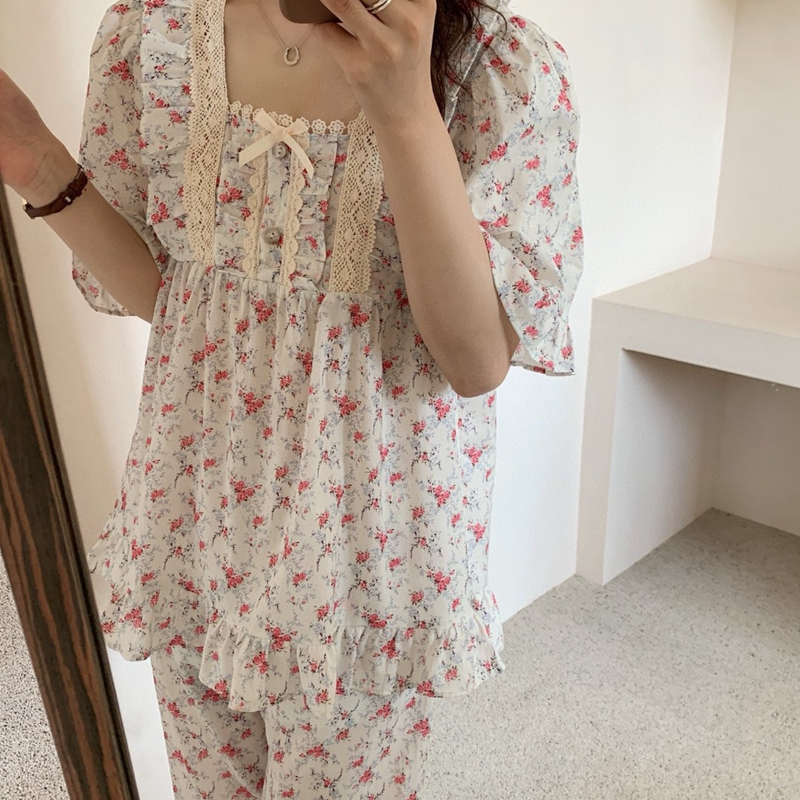 商品名称:(总)妍景家居生活馆 2025新款韩系蕾丝边碎花方领套装款