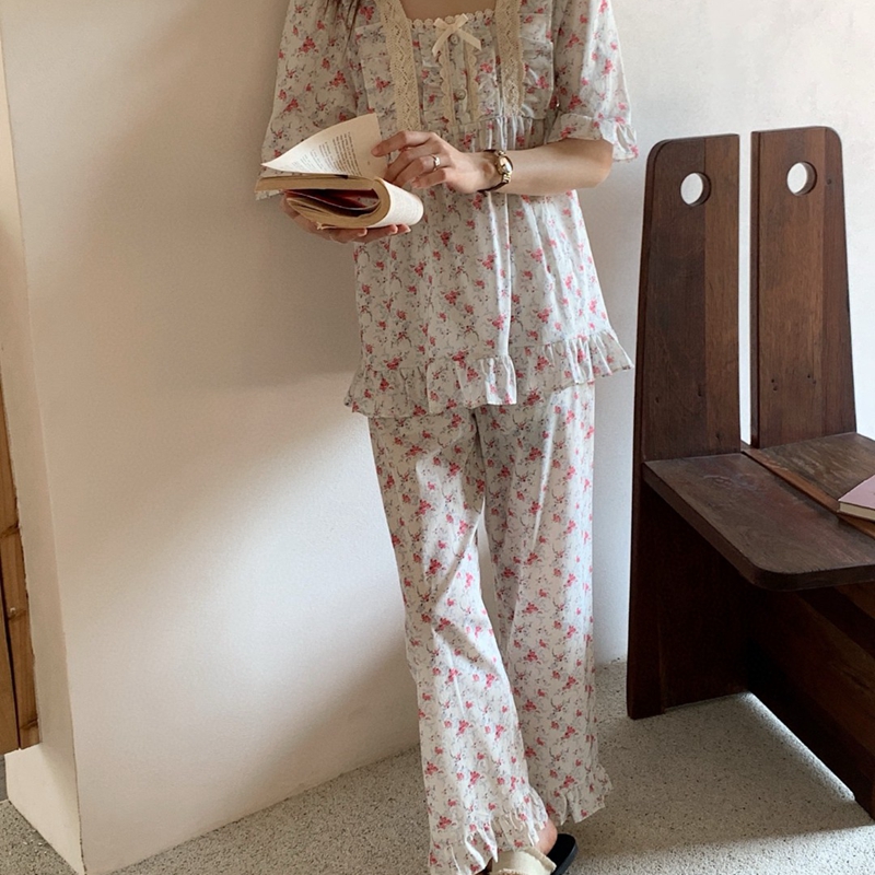 (总)妍景家居生活馆 2025新款韩系蕾丝边碎花方领套装款