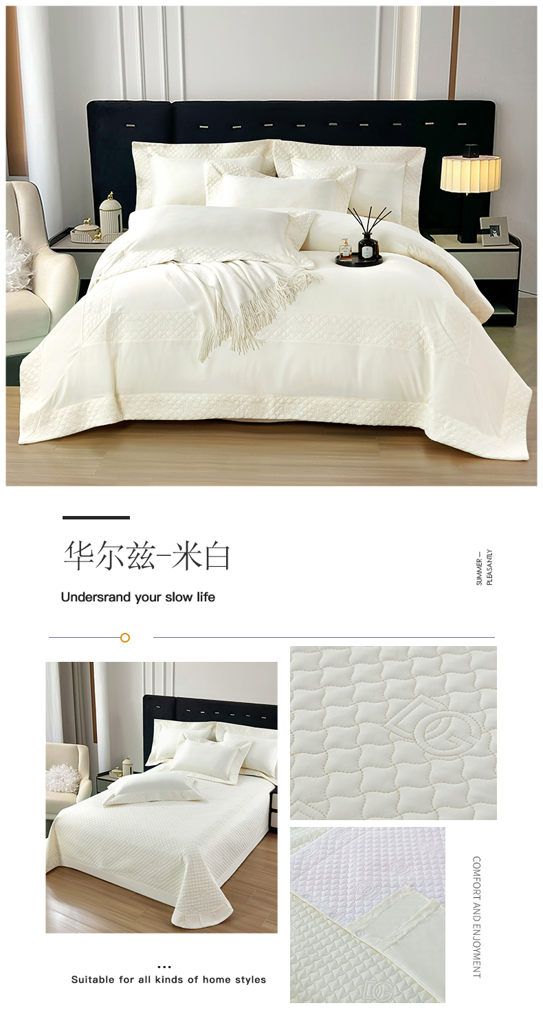 商品名称:OL家纺2025新款轻奢风氧乐棉床盖夹棉防滑四件套 华尔兹-米白