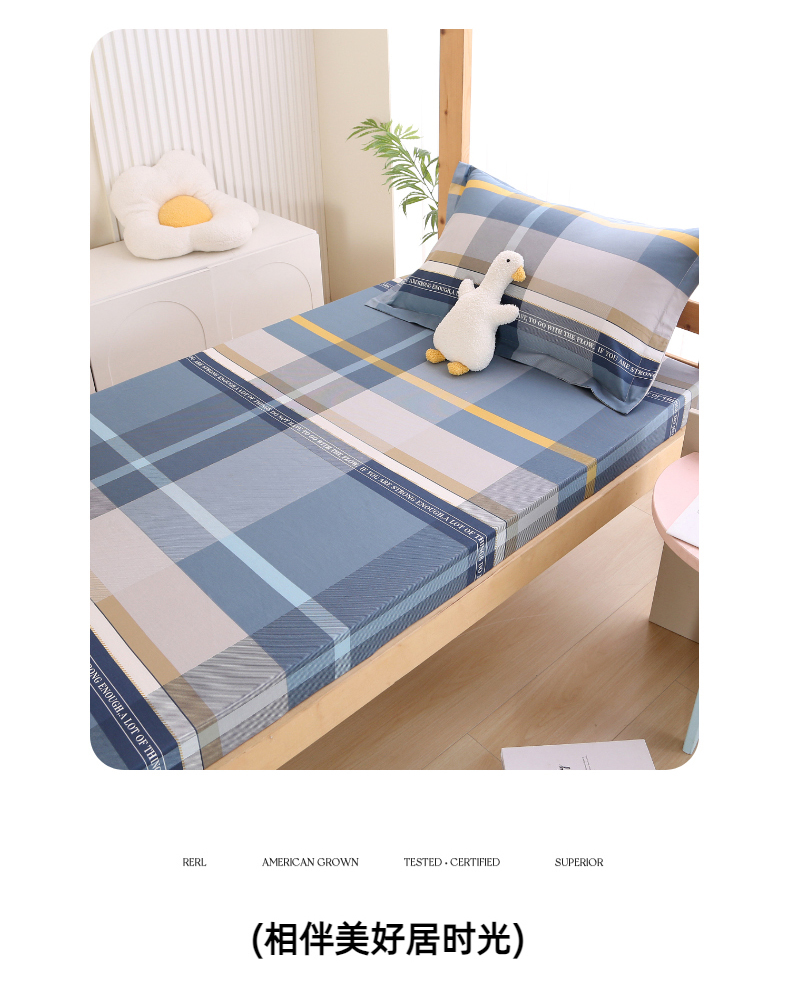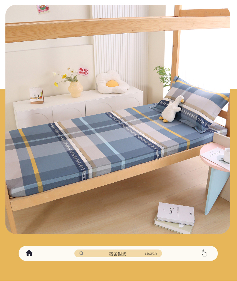 • 91家纺网 家纺一手货源 找家纺 凯森家纺 2024新款13372全棉印花学生床笠宿舍寝室床垫保护套上下铺床笠90x190 格调-蓝