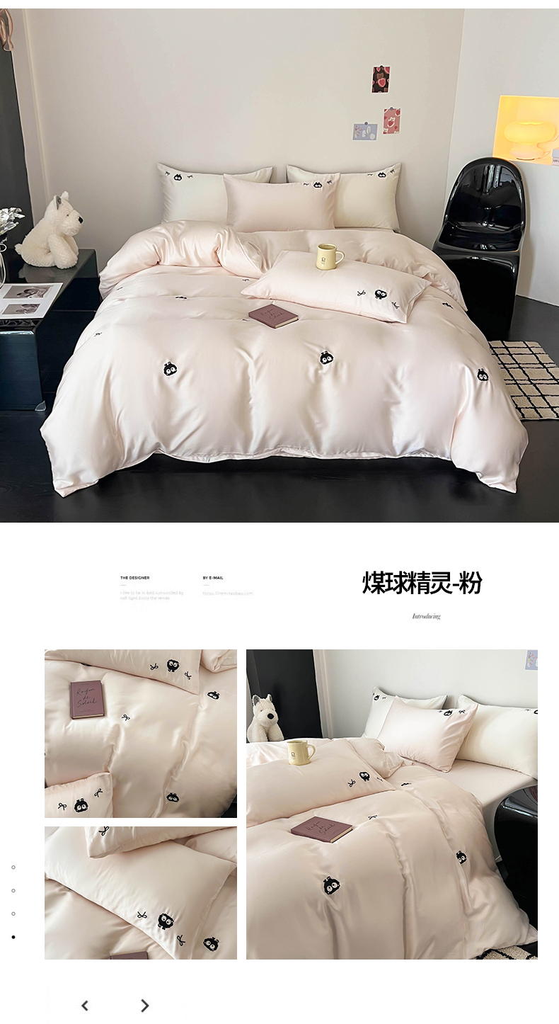 商品名称:蜜柚 2025新品60S奥地利兰精天丝小元素刺绣三件套四件套 煤球精灵-粉