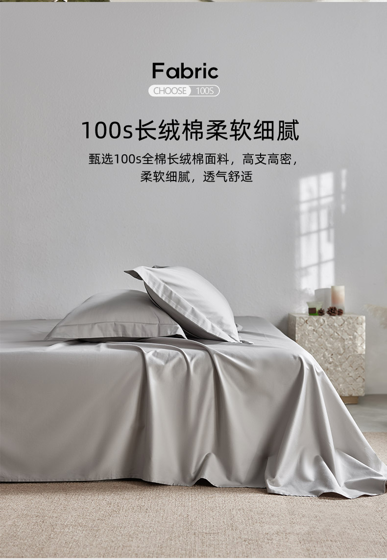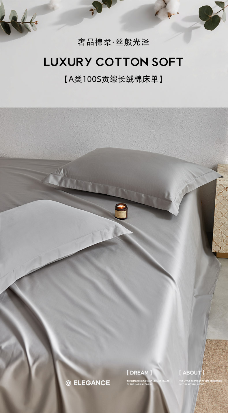 轩和家居 2025新款50S贡缎长绒棉纯棉单床单单品床单床单单件 雅士灰