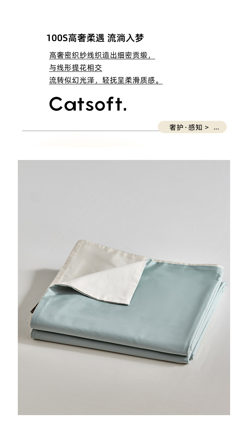 • 91家纺网 家纺一手货源 找家纺 轩和家居 2025新款50S贡缎长绒棉纯棉单被套单品被套被套单件 迷雾灰+夏恋粉