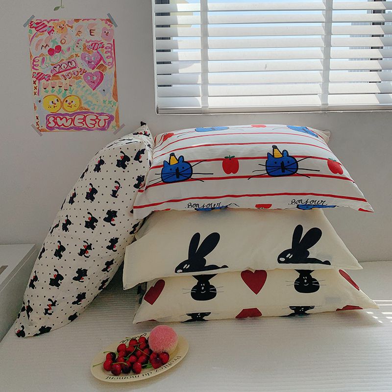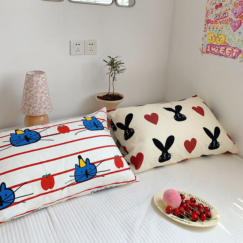 商品名称:柚可家居 2024新款活性印花单枕套-ins卡通系列 爱心兔