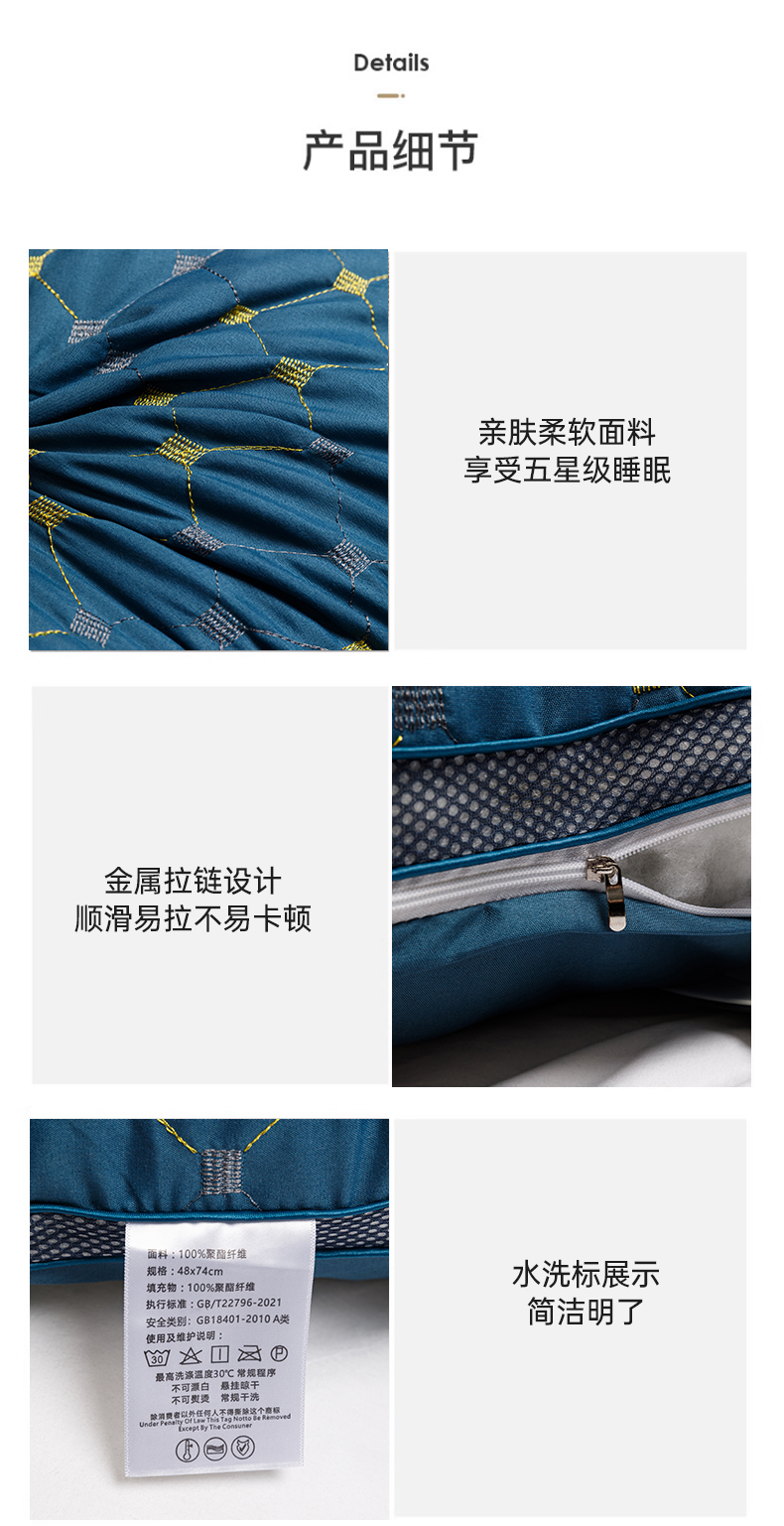当前位置: 91家纺网 > 商品网购 > 枕头/枕芯/保健枕/颈椎枕 > 普通枕芯 > 雅晨枕芯 2025新款满天星透气绗绣羽丝绒枕芯枕头 满天星绗绣羽丝绒枕-蓝色 48x74低枕/只 600克