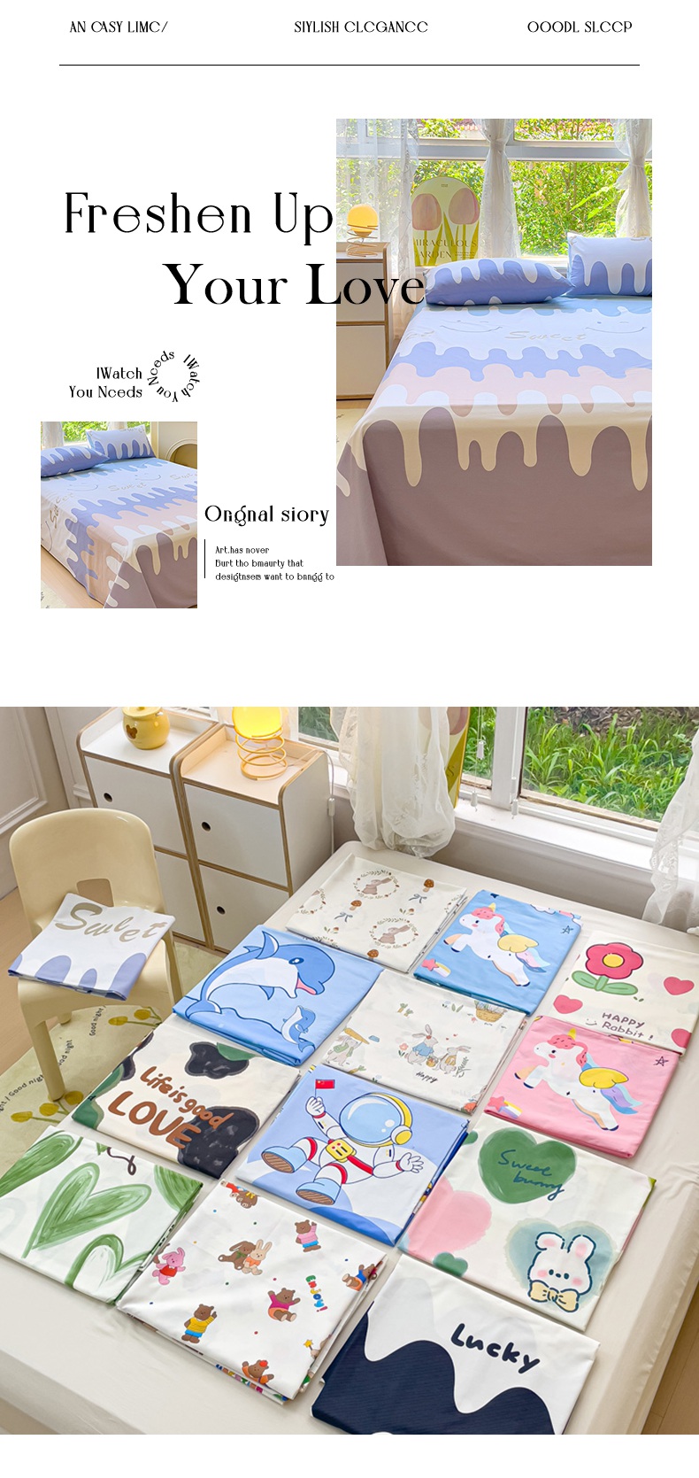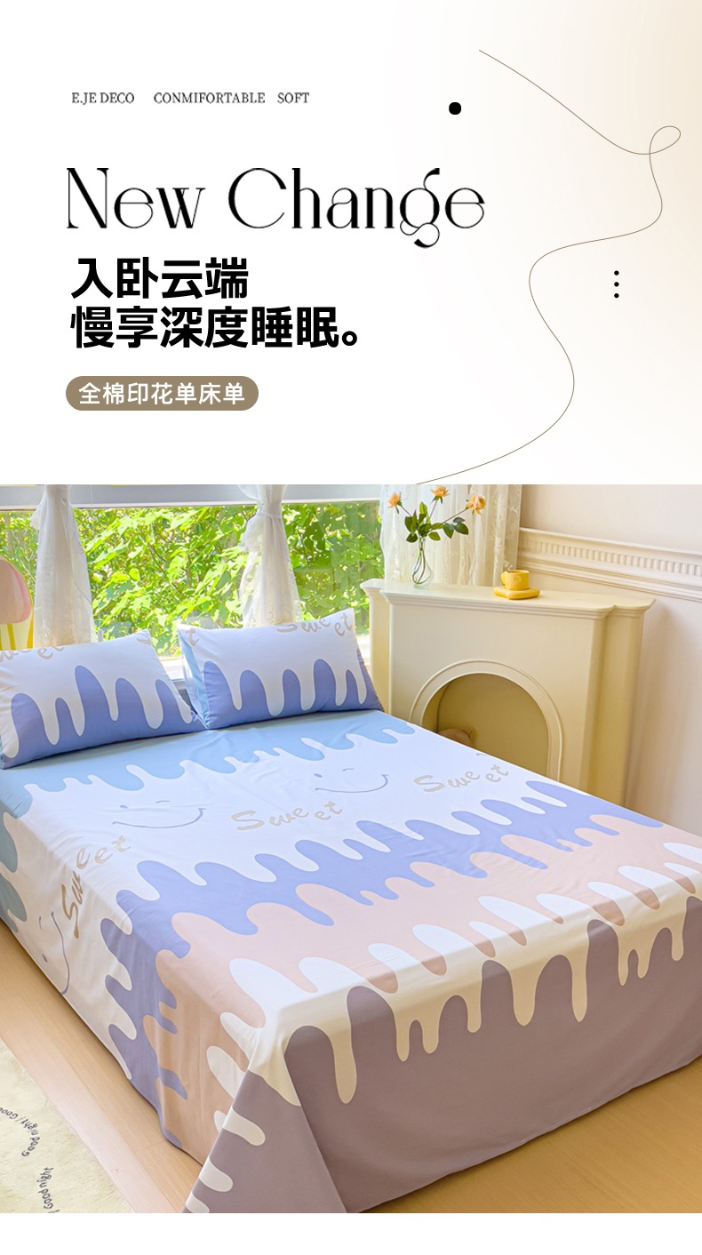 (总)金鑫汇家纺 2026新款全棉印花小清新单品床单系列-可露丽,海盐可露丽,浅咖可露丽,浅绿可露丽,月下花影-桔,月下花影-蓝,月下花影-绿