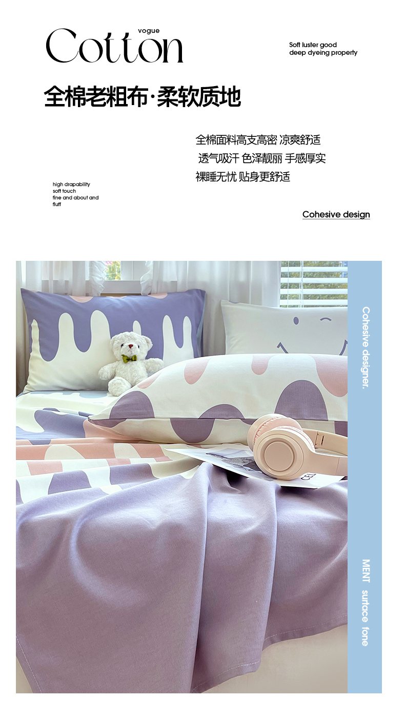 (总)金鑫汇家纺 2026新款全棉印花小清新四件套系列-可露丽,海盐可露丽,浅咖可露丽,浅绿可露丽,月下花影-桔,月下花影-蓝,月下花影-绿