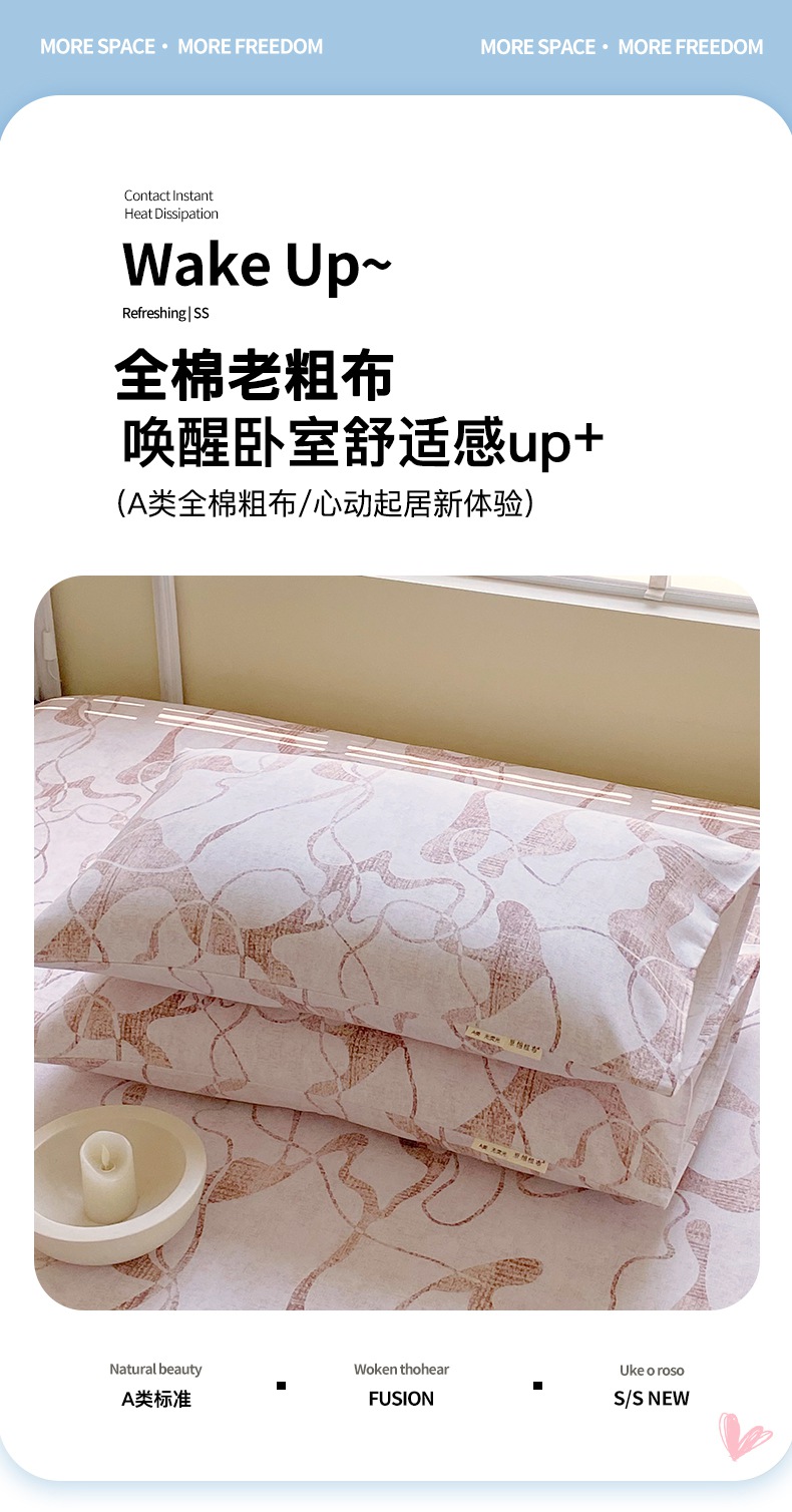 金鑫汇家纺 2025年新款百分百全棉老粗布全棉加厚加密高克重单品枕套(花型更好卖,面料更厚实,自带凉感) 米亚红
