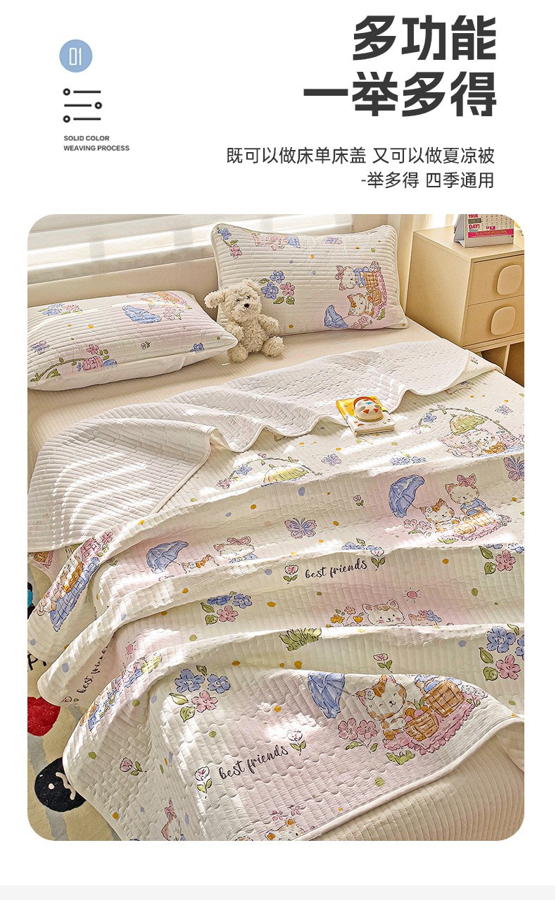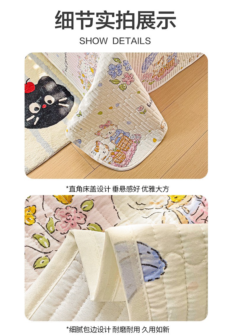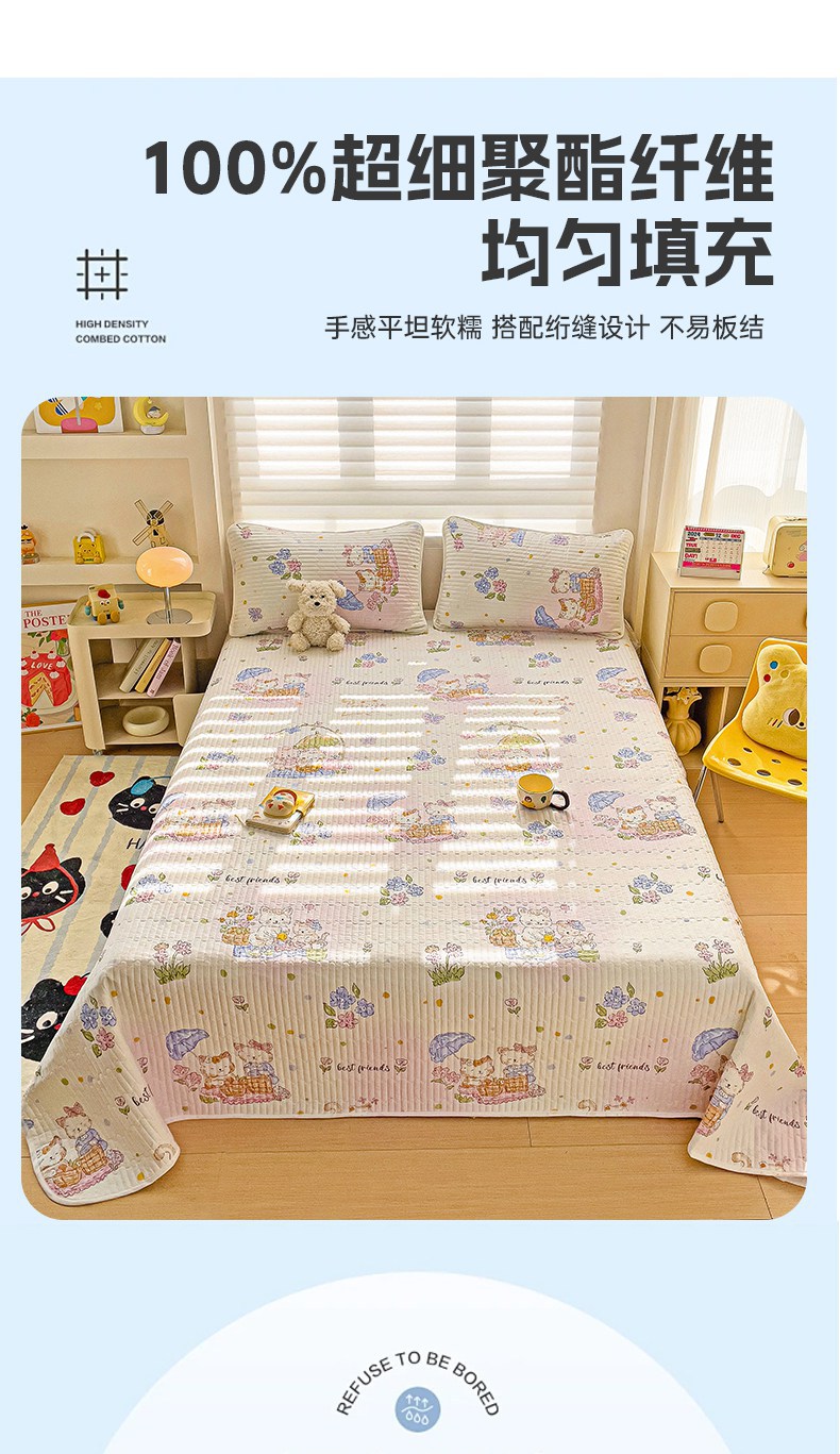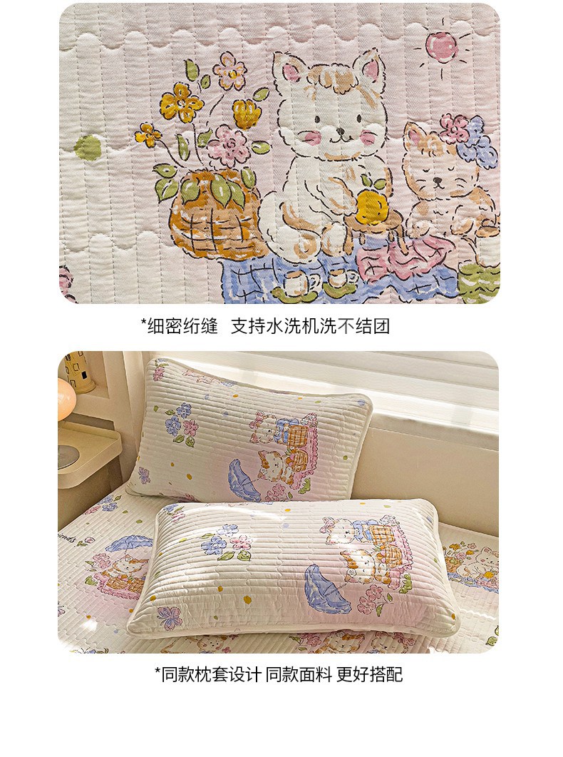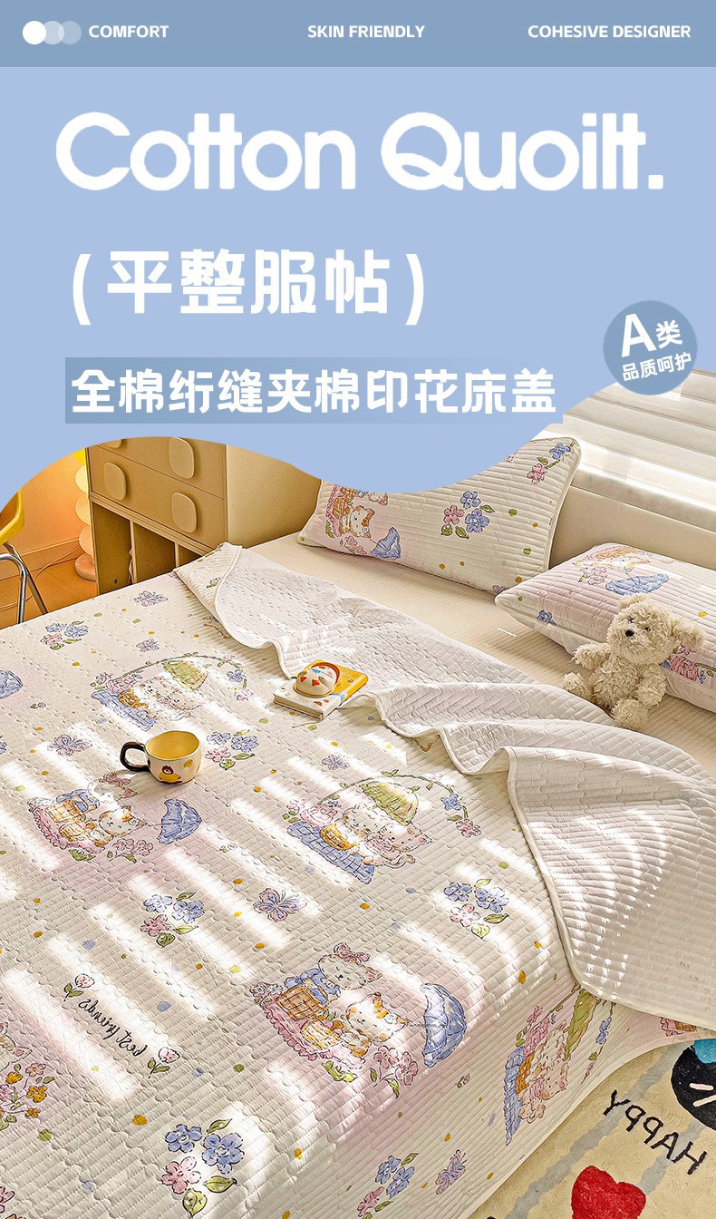 金鑫汇家纺 2025新款全棉绗缝夹棉印花床盖 喵喵日记