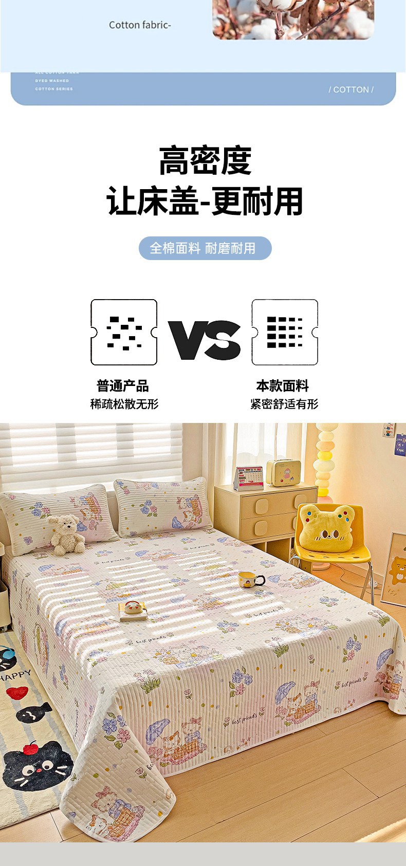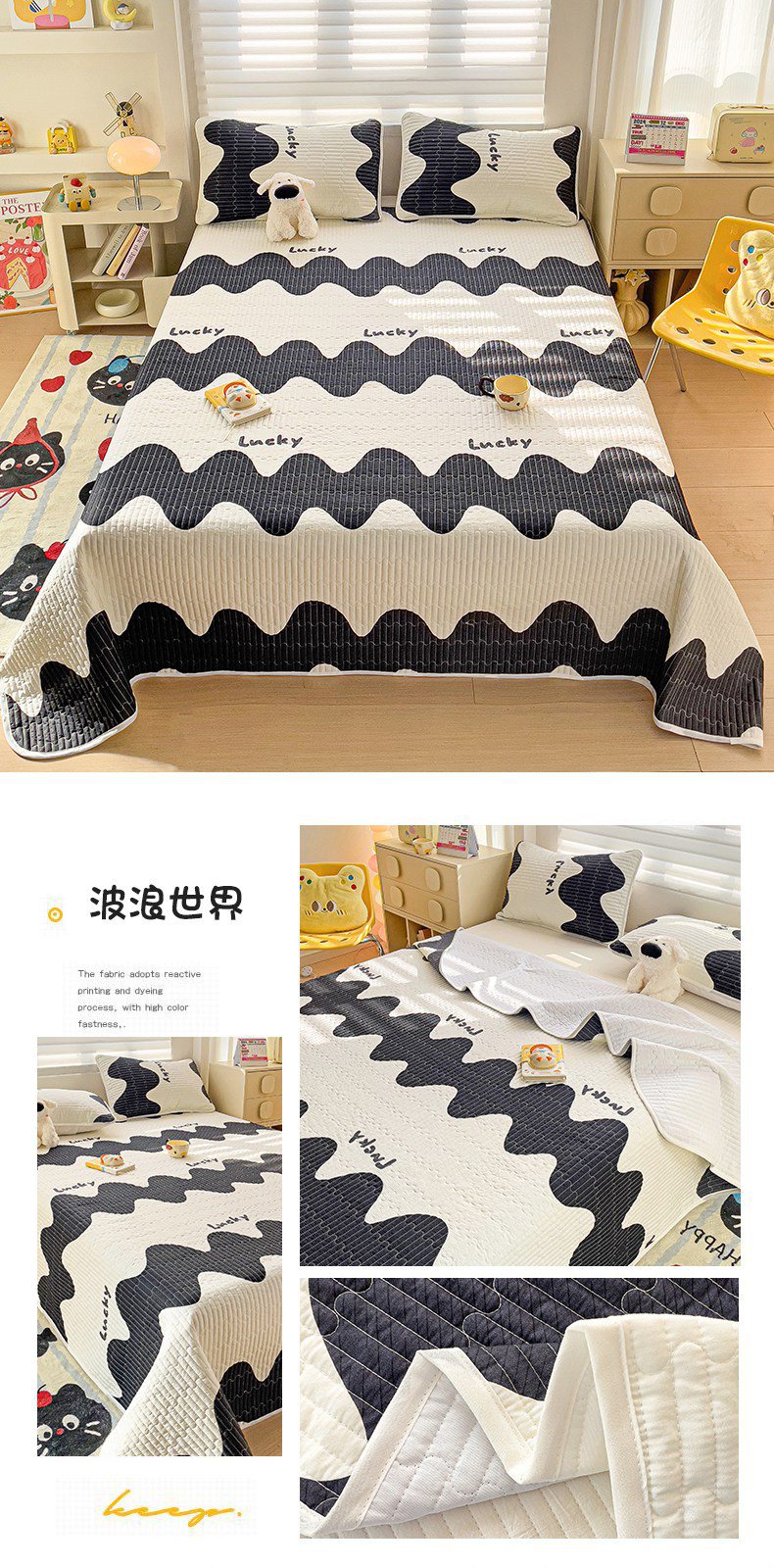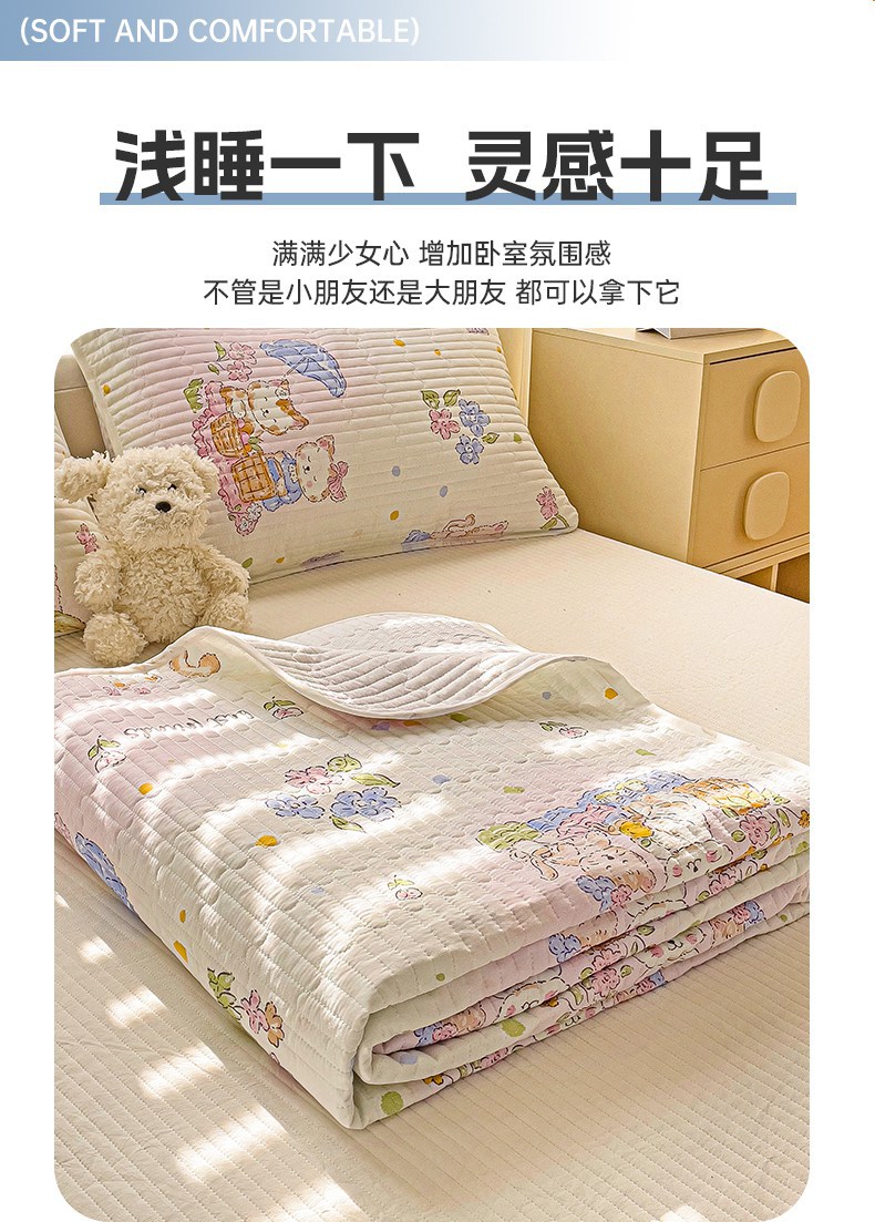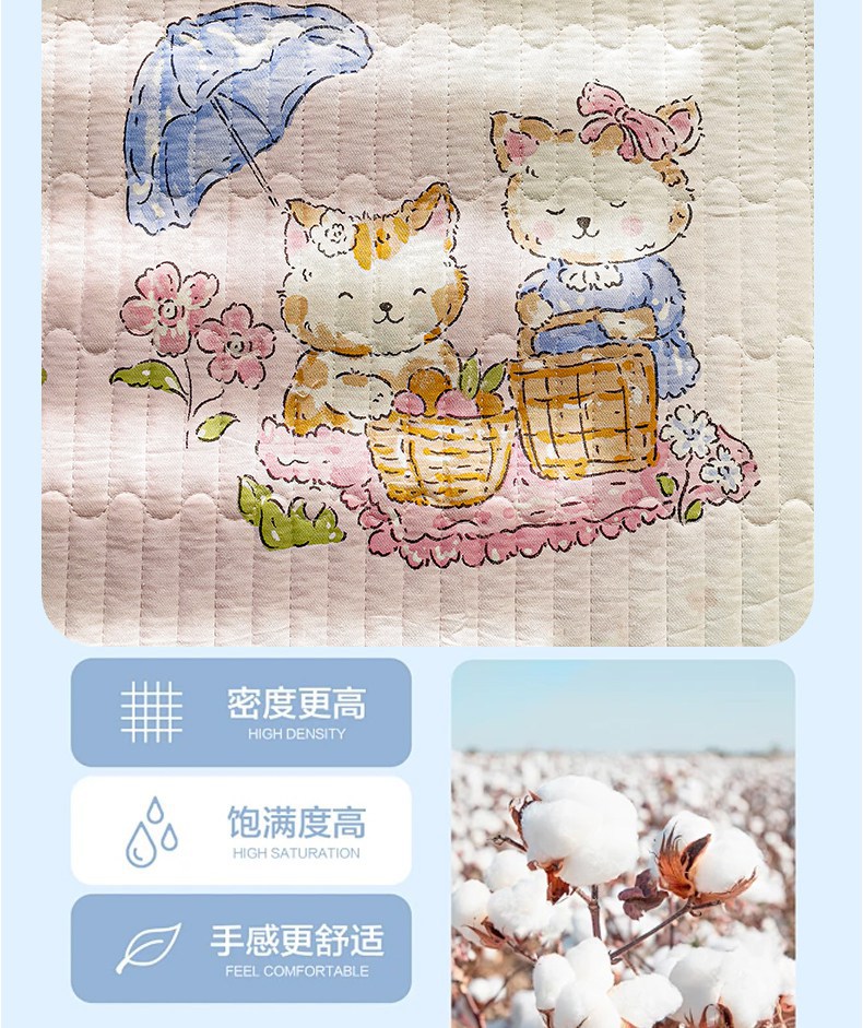 金鑫汇家纺 2025新款全棉绗缝夹棉印花床盖 喵喵日记