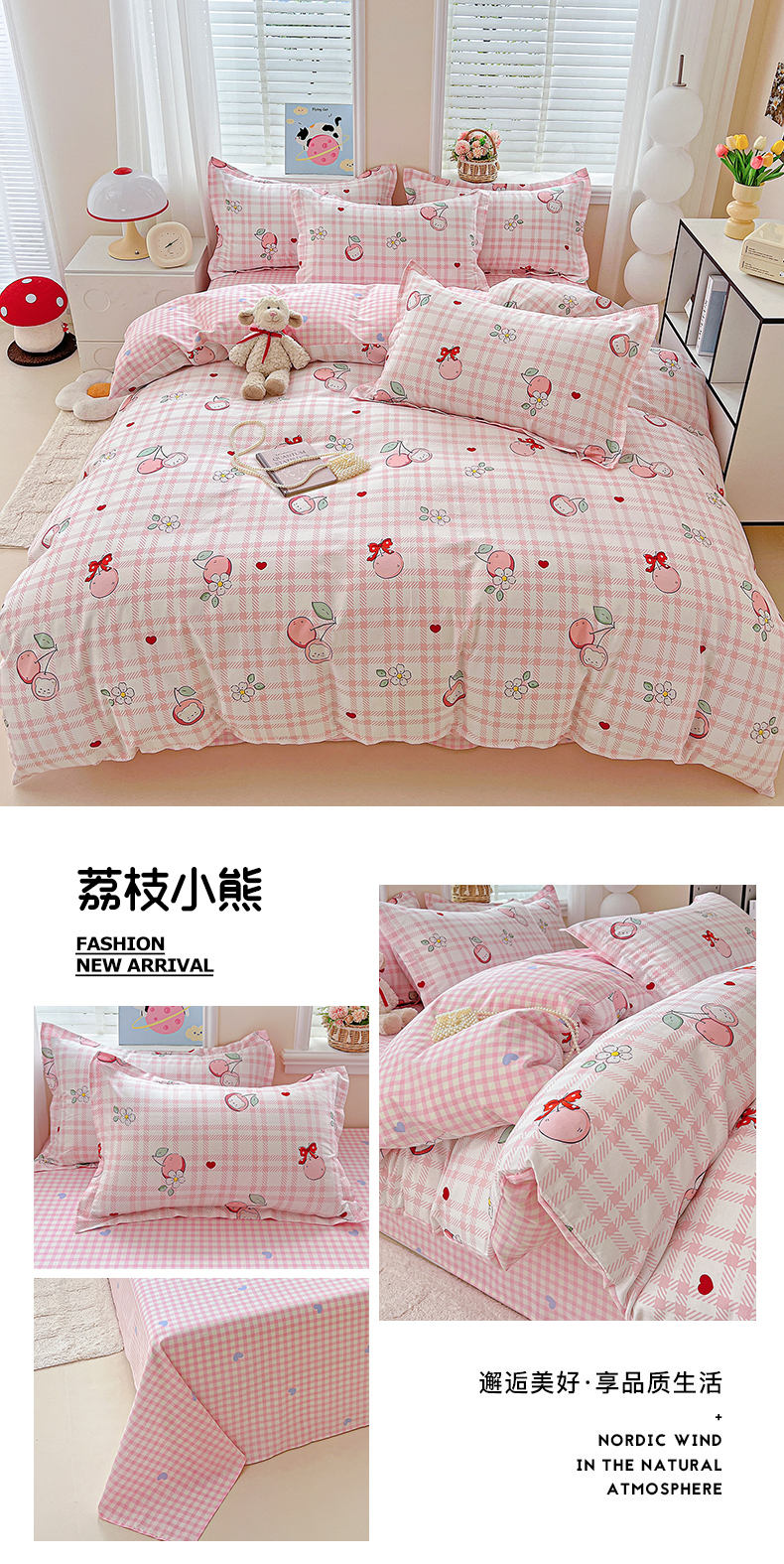 当前位置: 91家纺网 > 商品网购 > 床品套件 > 四件套 > 全棉普通四件套 > 恩泽2025全棉印花四件套 荔枝小熊