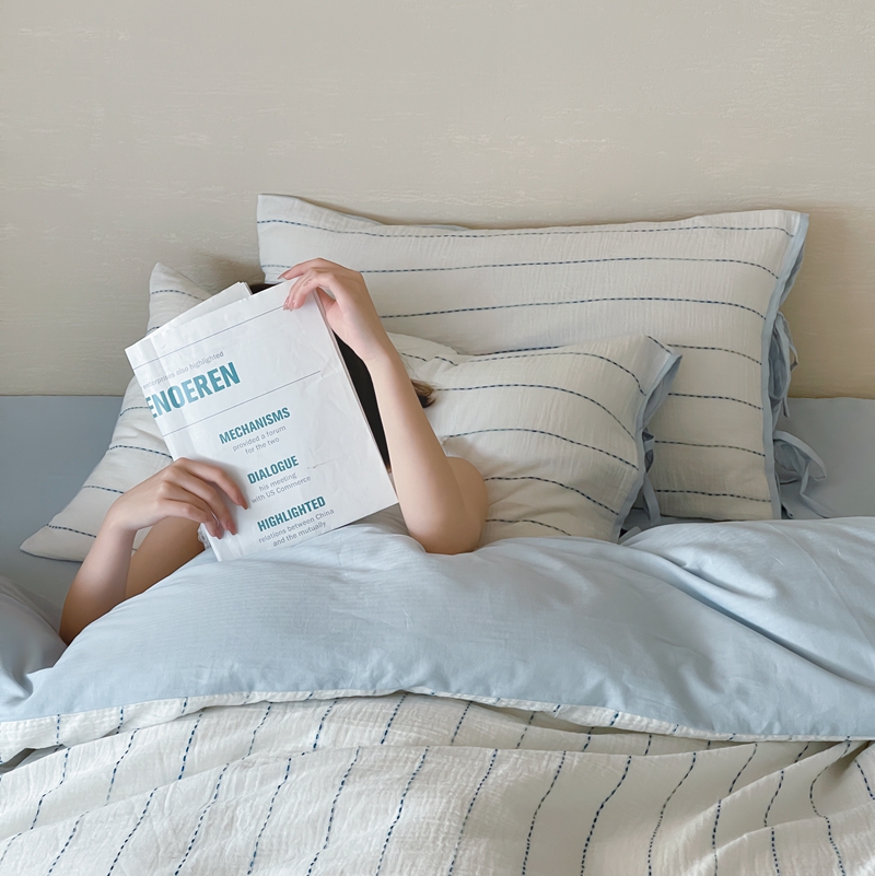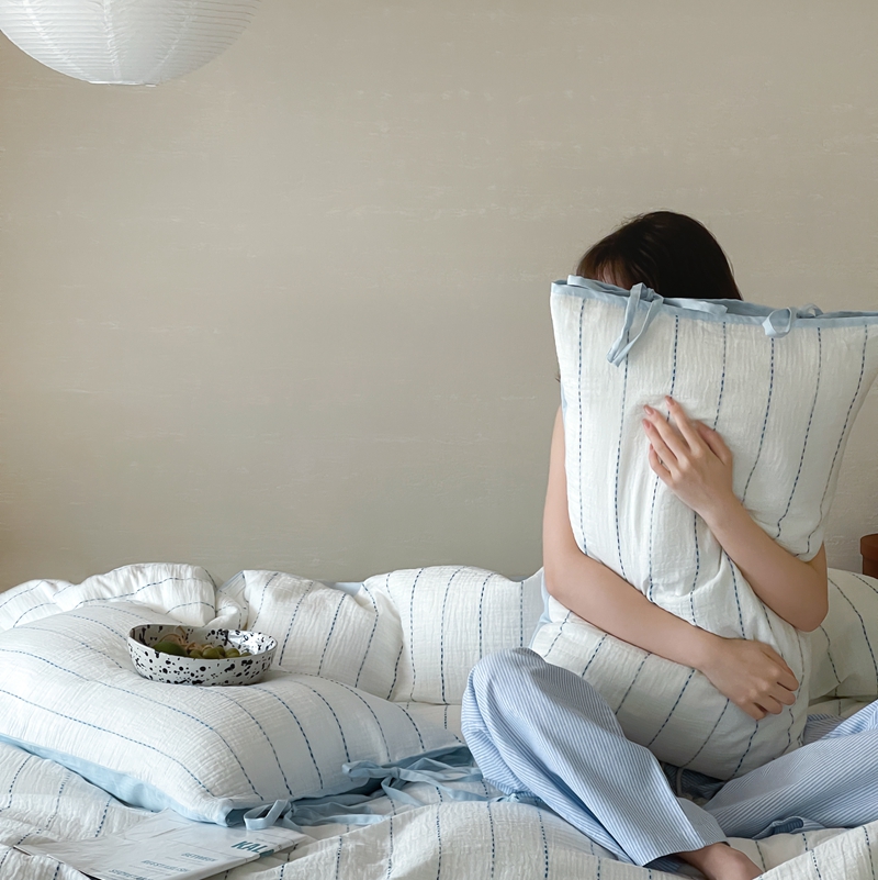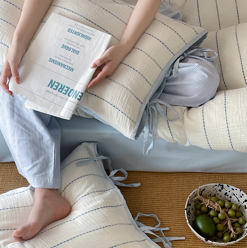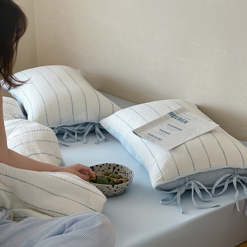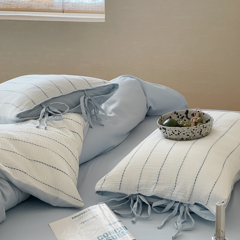 小春日和2025新款皱皱纱水洗穿绳渐变工艺四件套 弥野 蓝