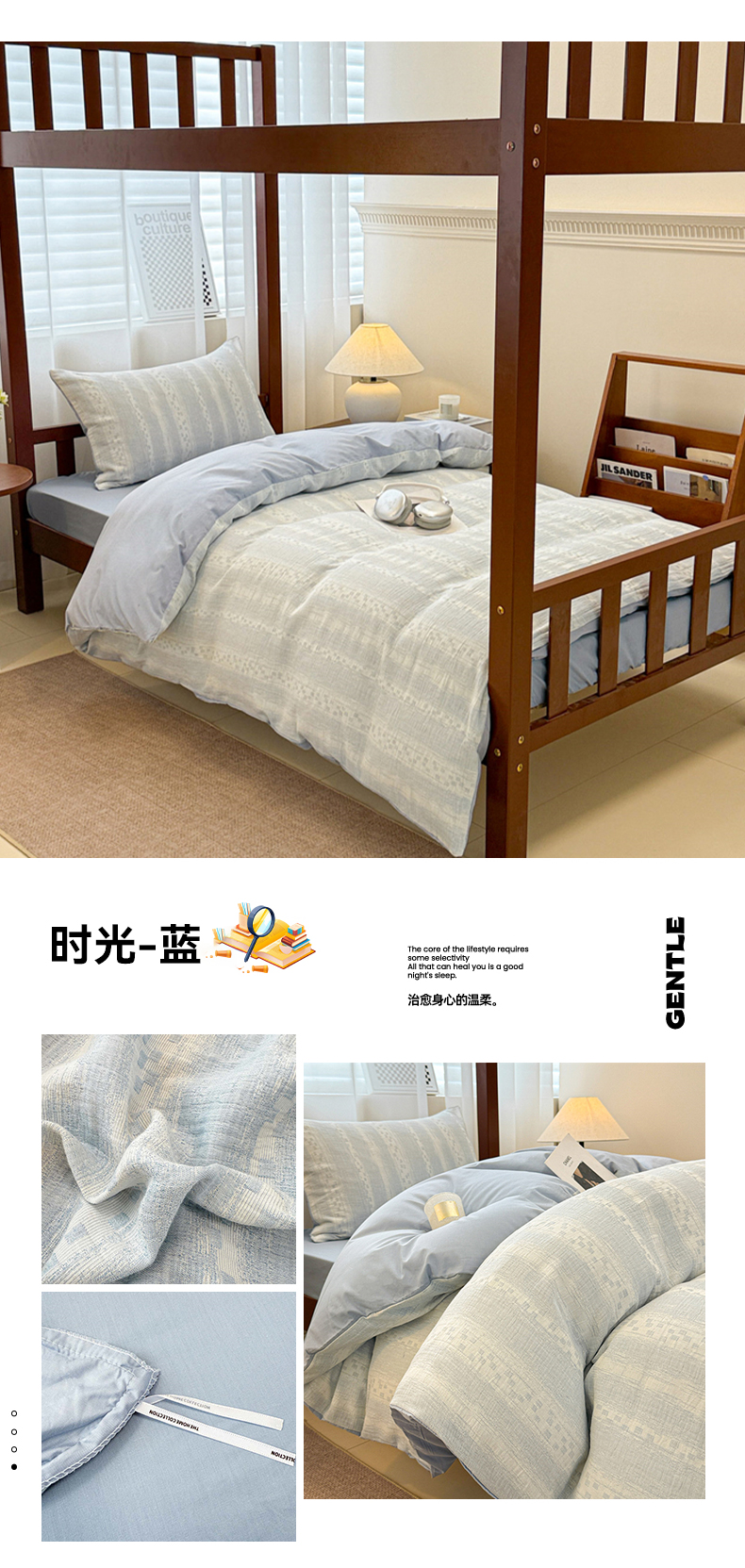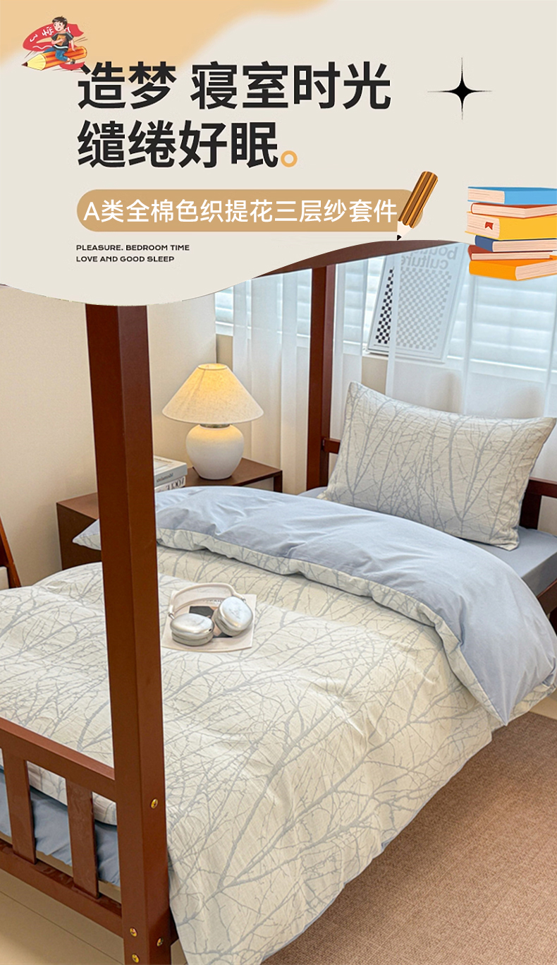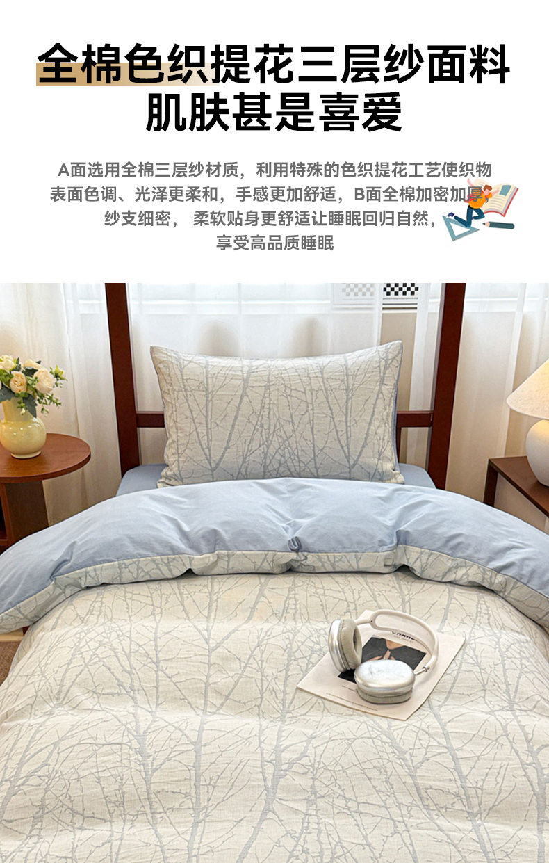 当前位置: 91家纺网 > 商品网购 > 床品套件 > 三件套 > 眠博士 2025新款A类全棉纯棉色织提花三层纱三四件套学生三件套宿舍上下铺 三层纱套件-春枝-蓝