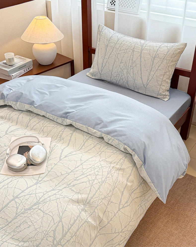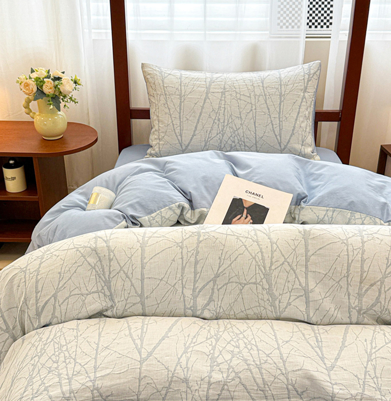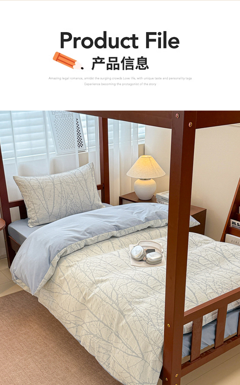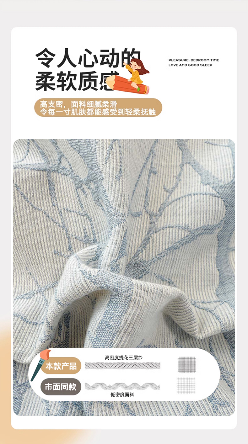 当前位置: 91家纺网 > 商品网购 > 床品套件 > 三件套 > 眠博士 2025新款A类全棉纯棉色织提花三层纱三四件套学生三件套宿舍上下铺 三层纱套件-春枝-蓝