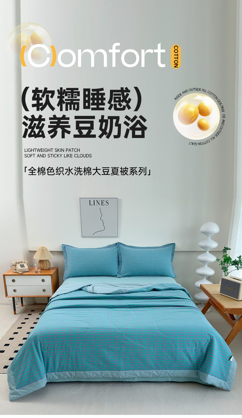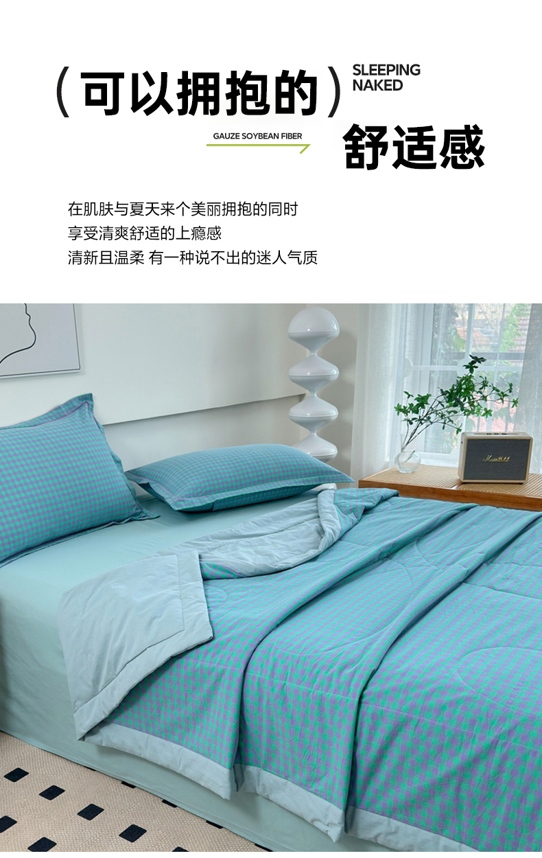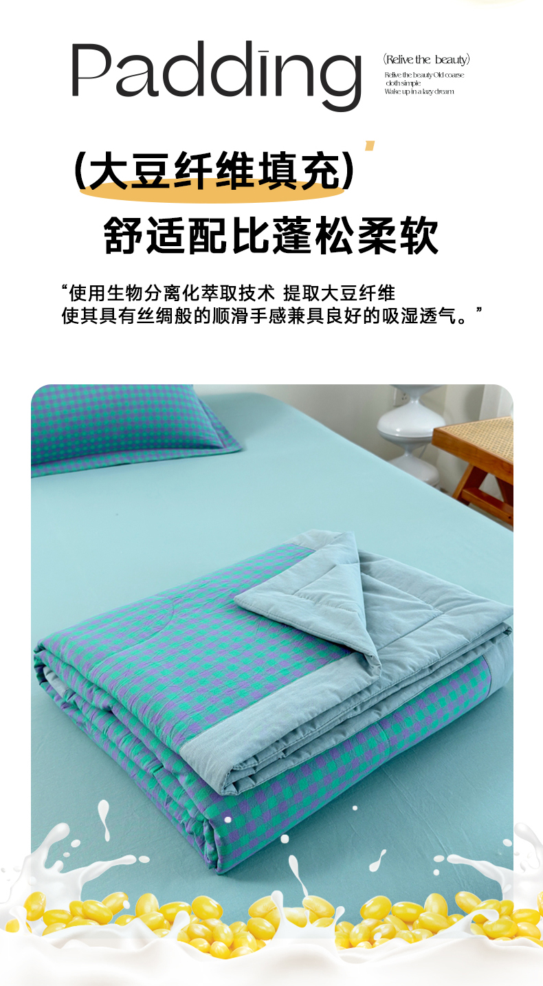 • 91家纺网 家纺一手货源 找家纺 价格下调三沁2025最新A类大豆纤维全棉色织水洗棉夏被四件套夏凉被空调被子无印良品 绿野仙踪小格