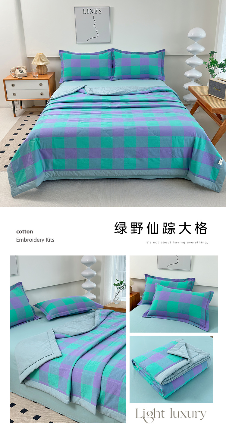 • 91家纺网 家纺一手货源 找家纺 (总)三沁2025新款全棉色织水洗棉夏被,彩虹大格,粉色恋人,爵士乐章,绿野仙踪大格,绿野仙踪小格,绿野仙踪中格,米夕玉咖,莫兰迪粉,秋荷粉,香芋紫小格