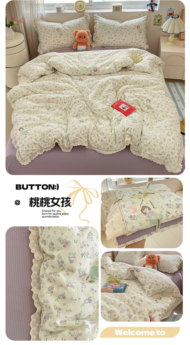 (总)玉海棠家纺 2025新款云感双层纱花边四件套,花边-布丁狗,花边-初恋,花边-米奇,花边-茉片,花边-莫奈,花边-诺言兔兔,花边-晴天,花边-桃桃女孩,花边-桃夭,花边-甜梦,花边-晚香玉,花边-雾漫春日,花边-鲜花小兔,花边-小熊蛋糕,花边-芝士奶酪,花边格格西高地