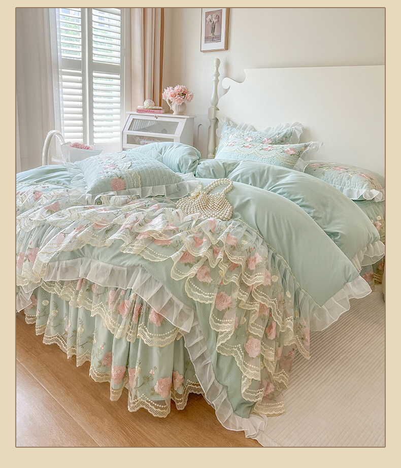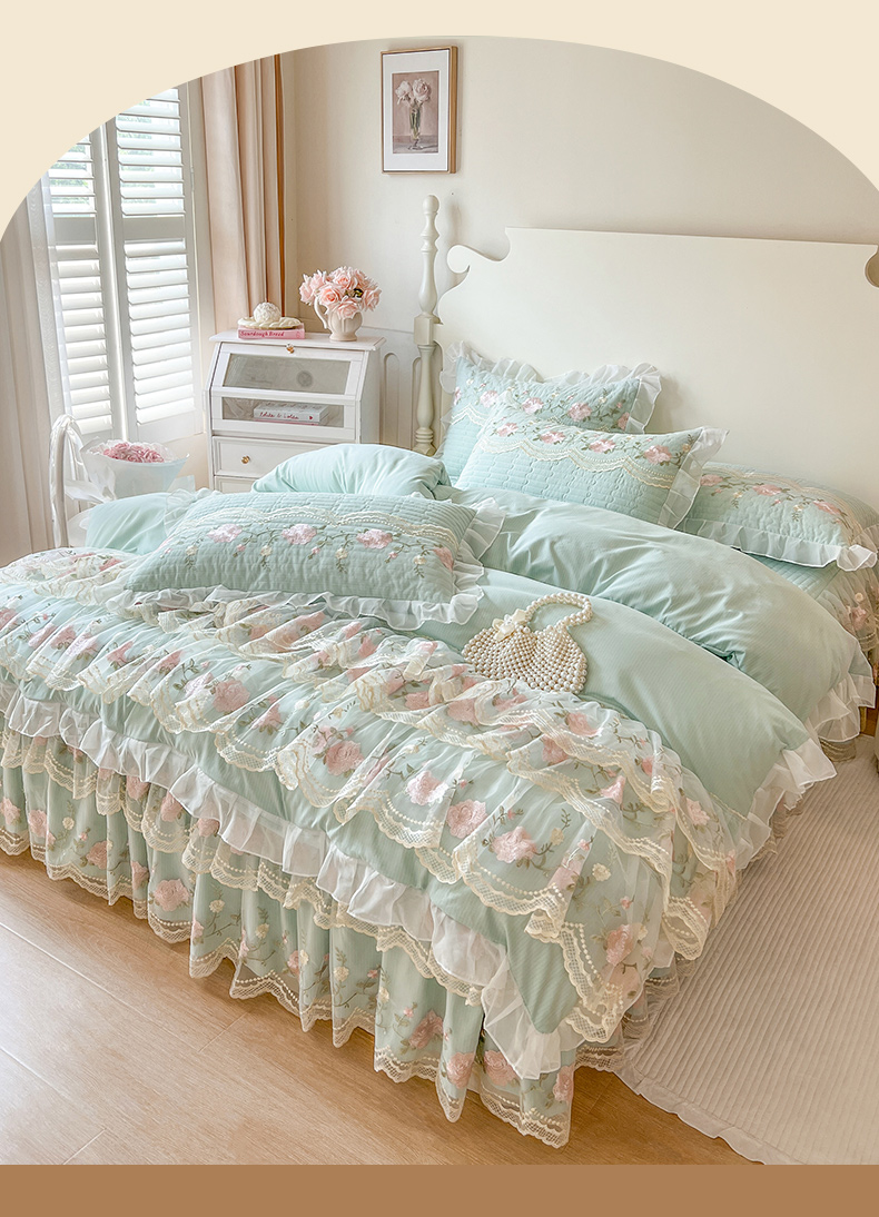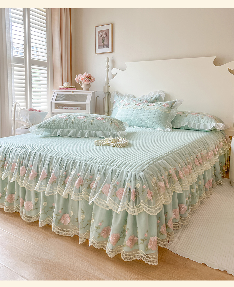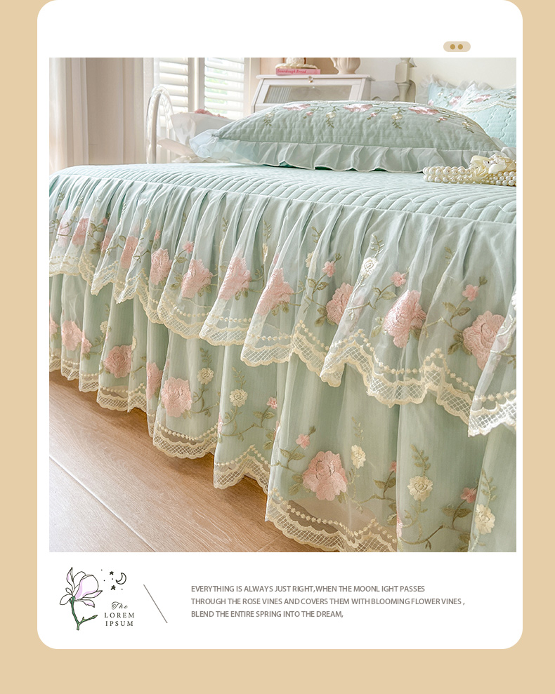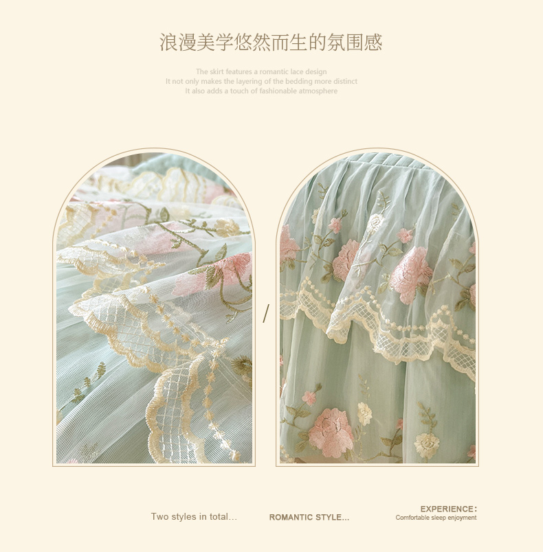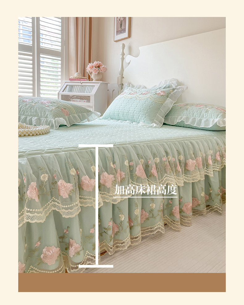 当前位置: 91家纺网 > 商品网购 > 床品套件 > 四件套 > 其它四件套 > 恋尚 2025新款木棉蕾丝床裙四件套-泡芙 泡芙-香草绿