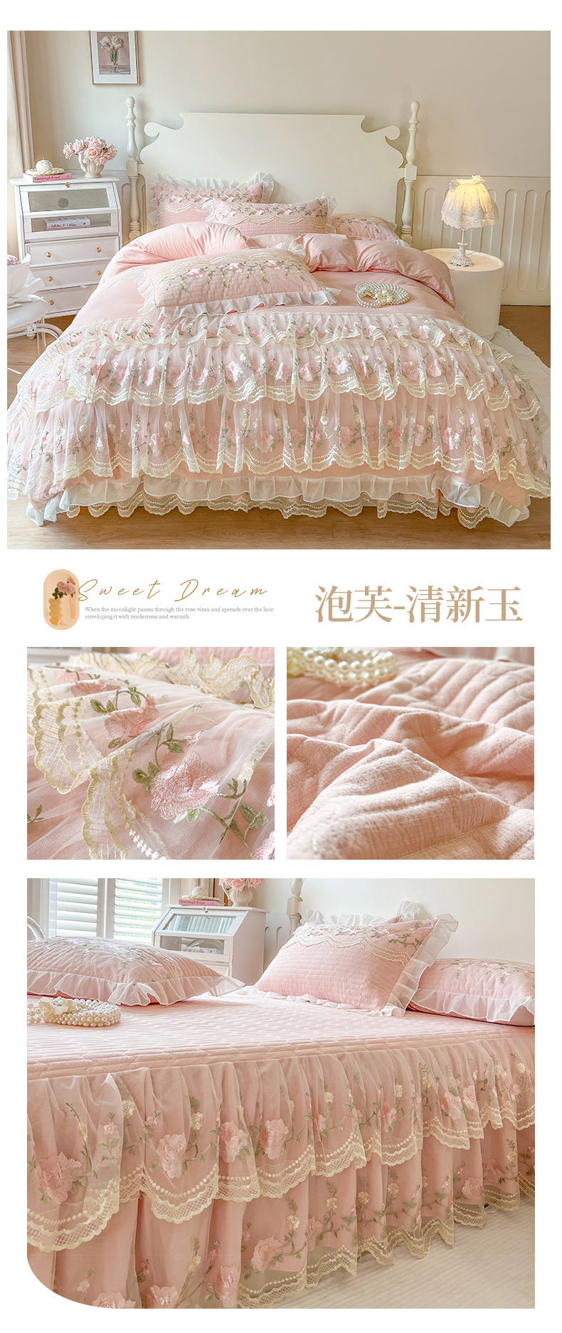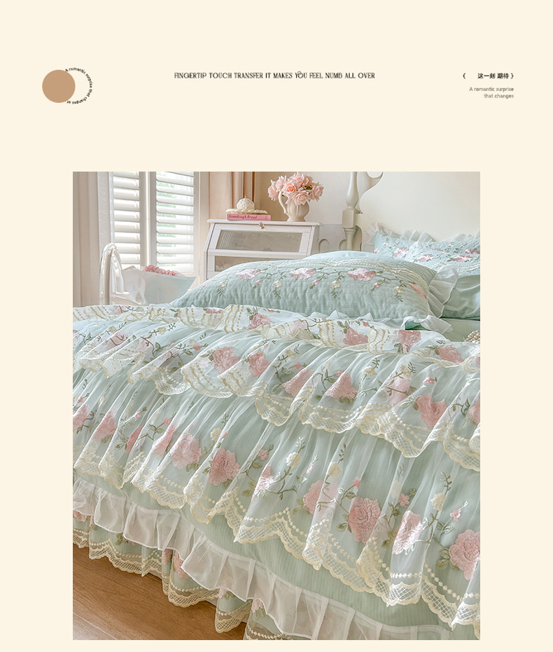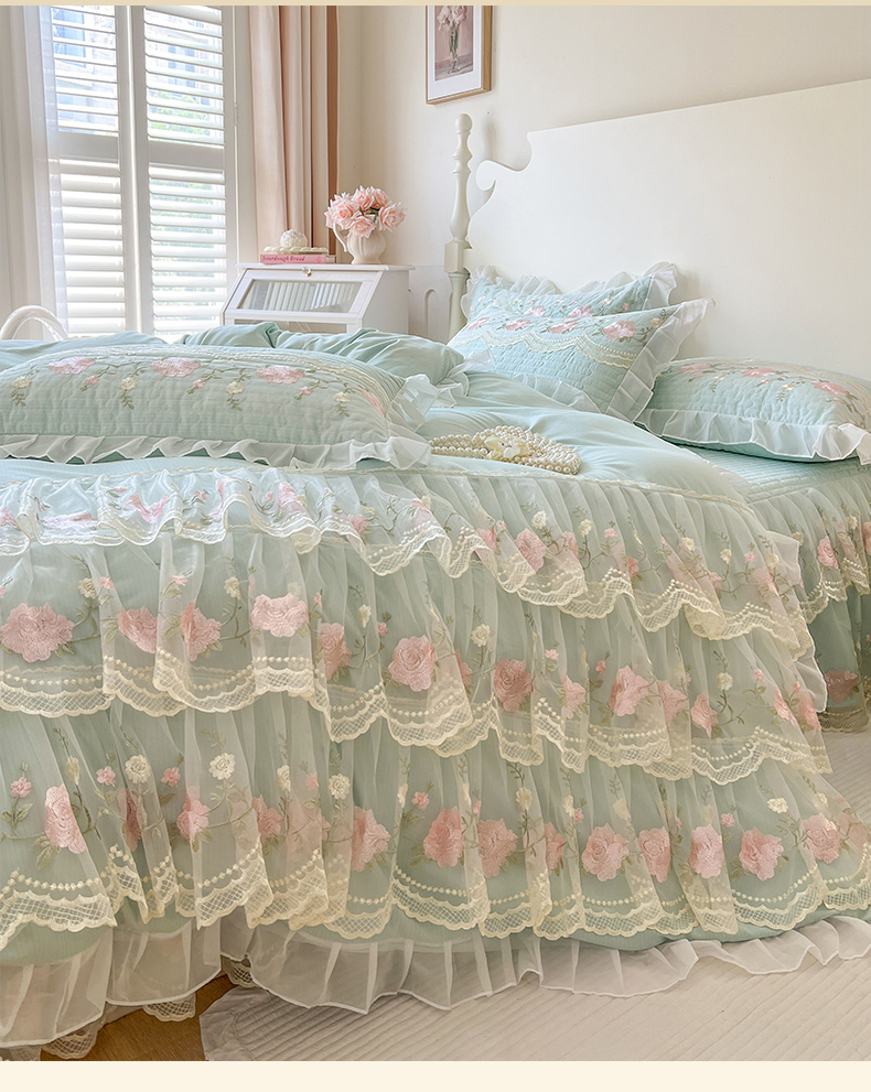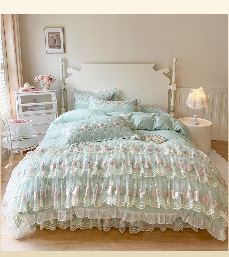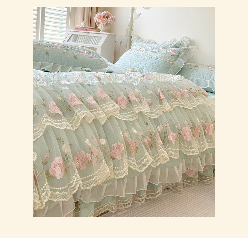 当前位置: 91家纺网 > 商品网购 > 床品套件 > 四件套 > 其它四件套 > 恋尚 2025新款木棉蕾丝床裙四件套-泡芙 泡芙-香草绿