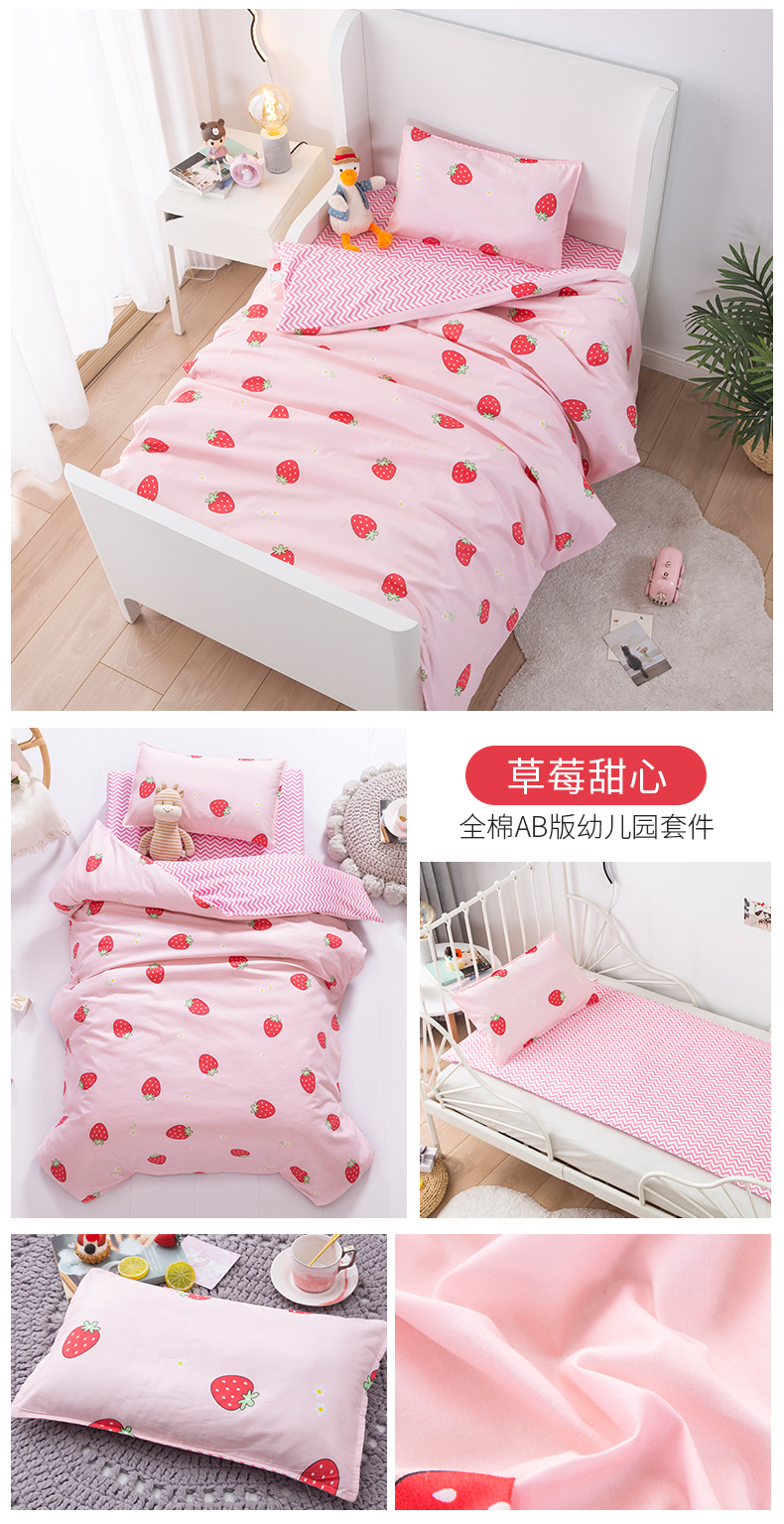 当前位置: 91家纺网 > 商品网购 > 床品套件 > 多件套 > 多件套 > 2025年新款幼儿园全棉被子三件套宝宝入园纯棉六件套被褥午睡被套草莓甜心