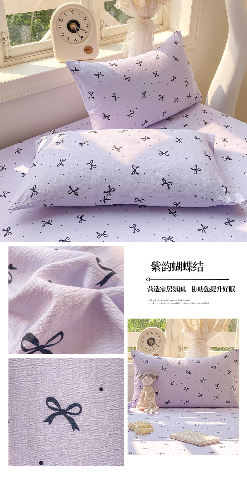 商品名称:眠势力 2025新款云感双层纱枕套ins奶油风云感超柔枕头套 紫韵蝴蝶结