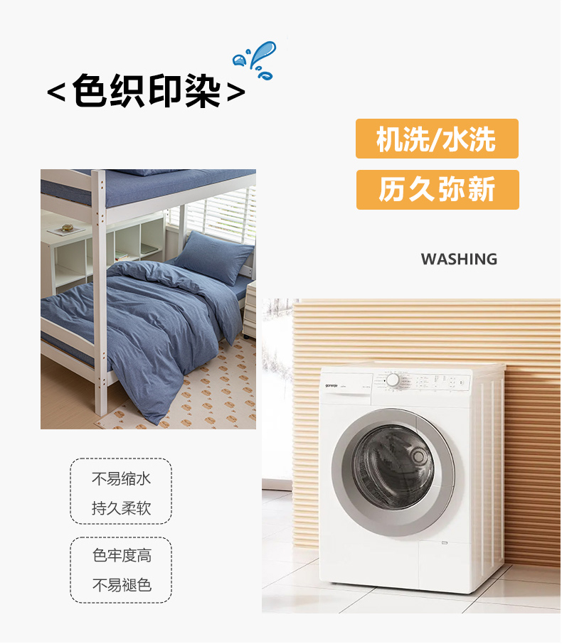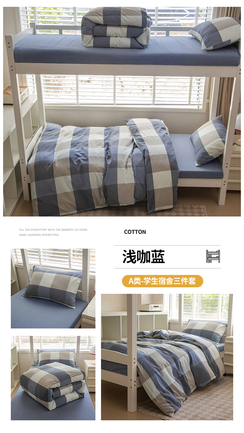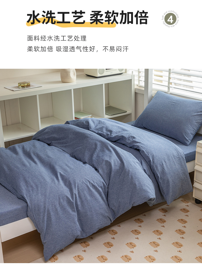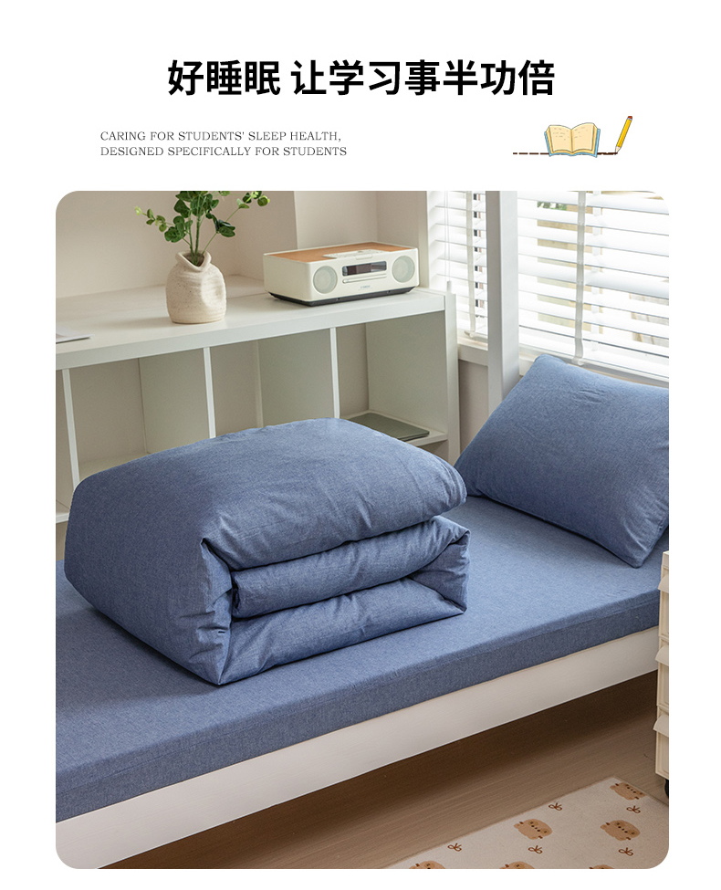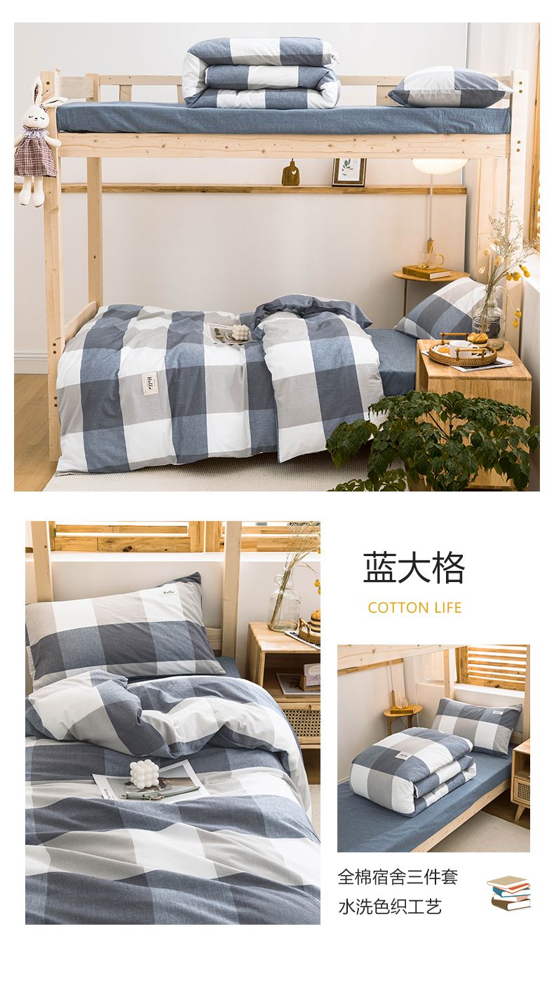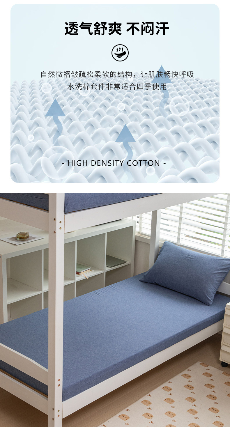 当前位置: 91家纺网 > 商品网购 > 床品套件 > 三件套 > 柠萌家居 2025年新款色织A类学生宿舍床笠三件套床垫套 牛仔蓝