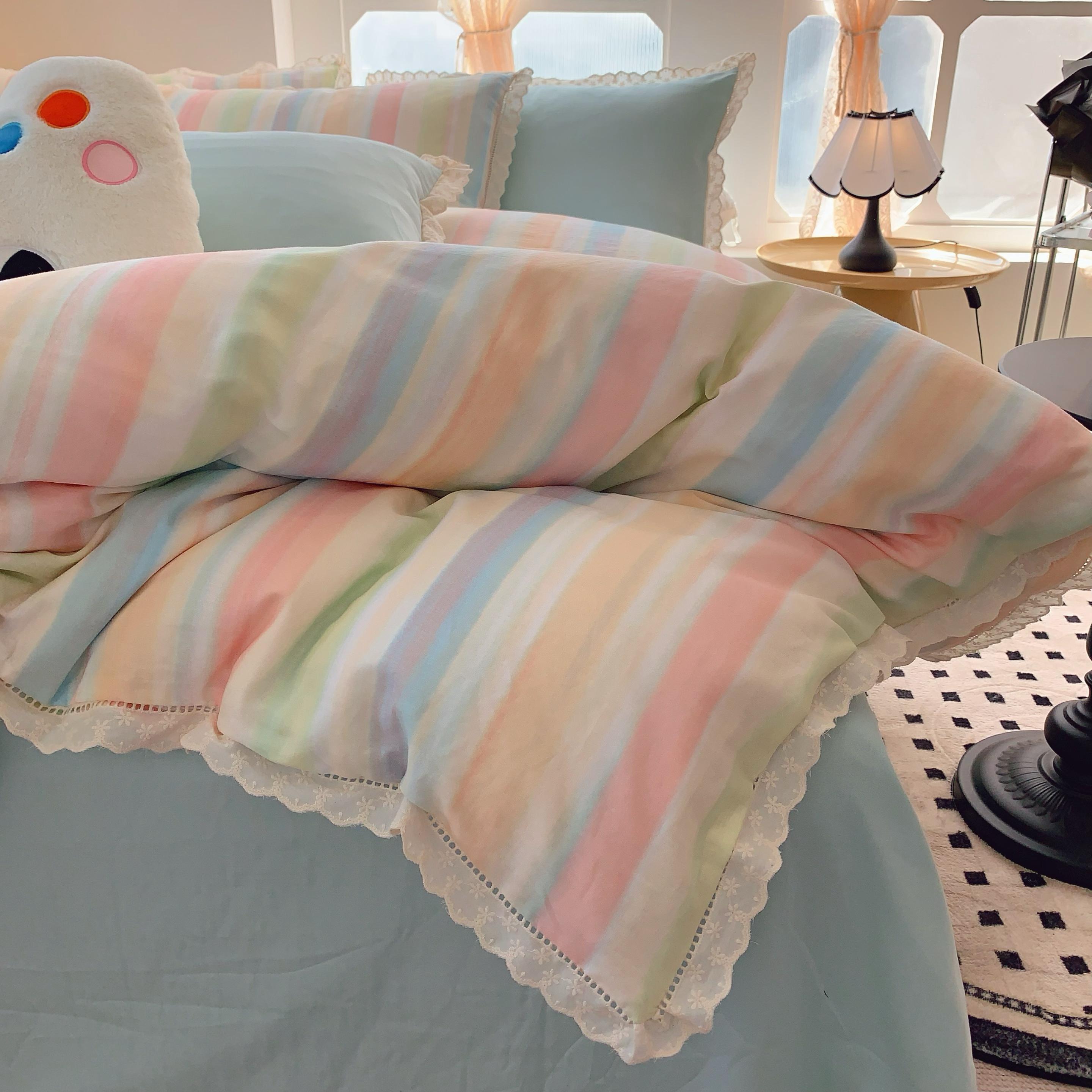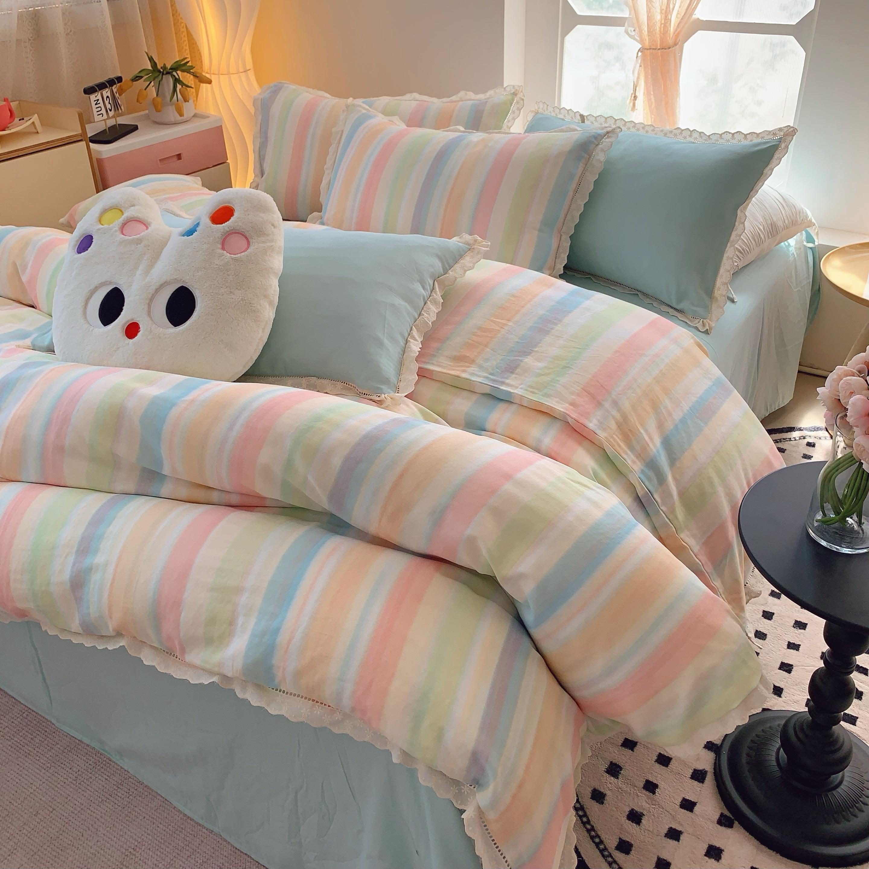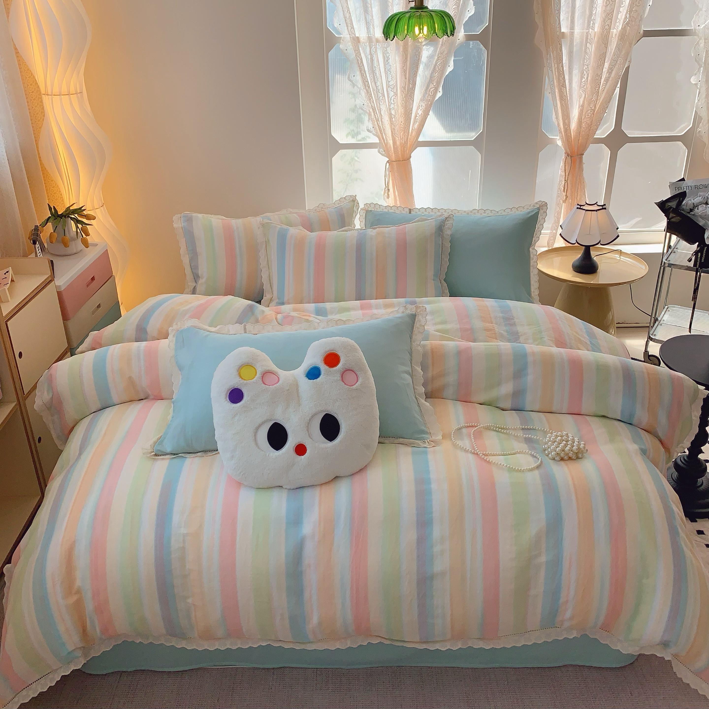 (总)奈萝家纺 2025新款全棉蕾丝花边床盖三件套四件套纯棉花边夏被,呆呆熊,花语绿,花语紫,柠檬,蔷薇,西瓜兔,夏蓝,夏梦,夏之语,小花熊,樱花
