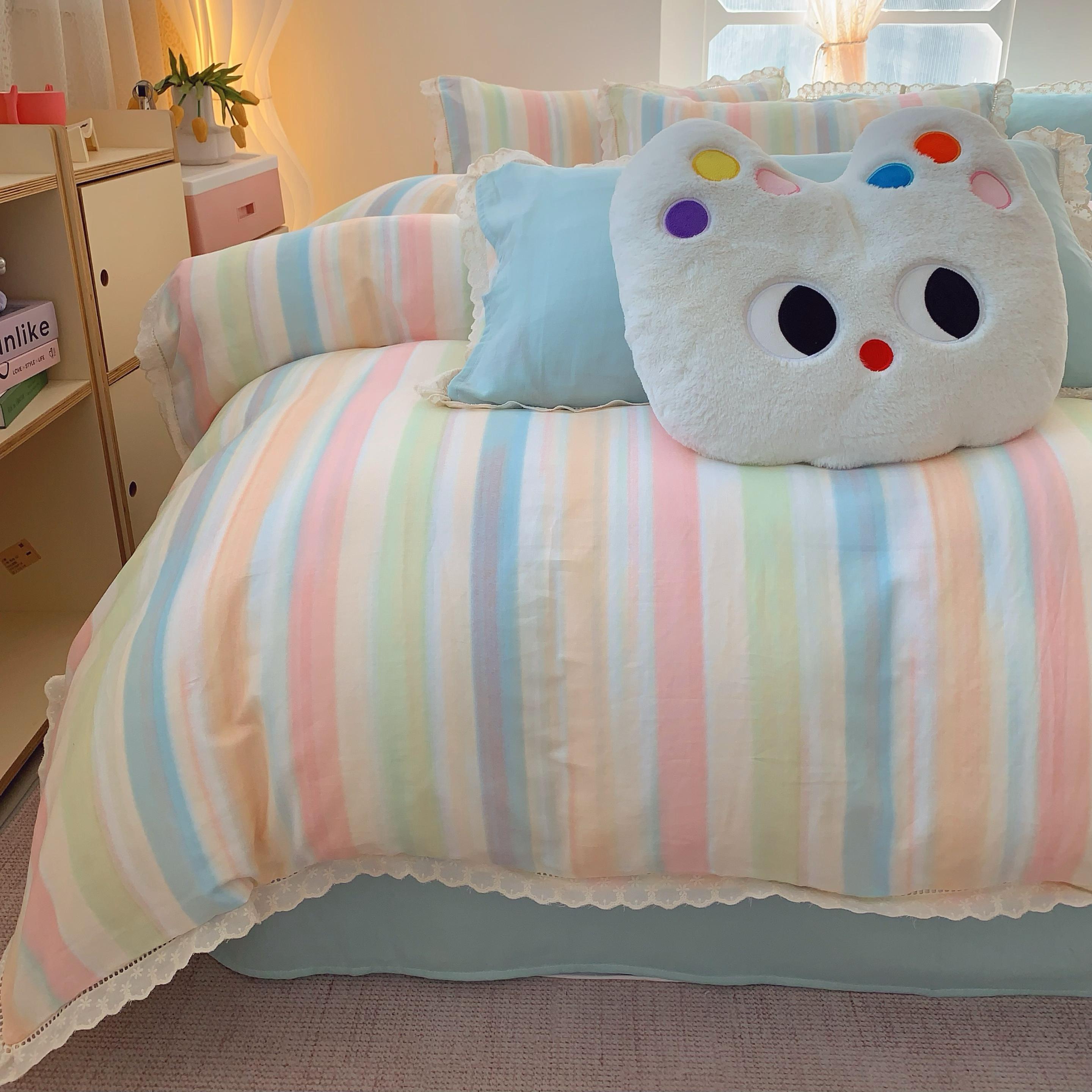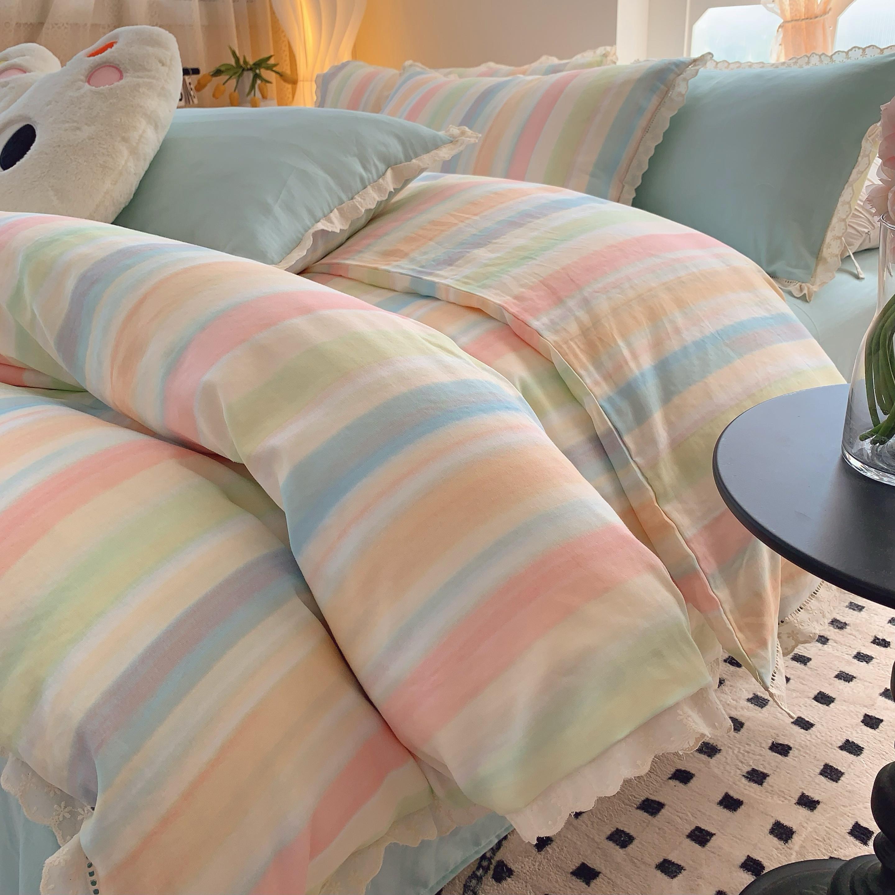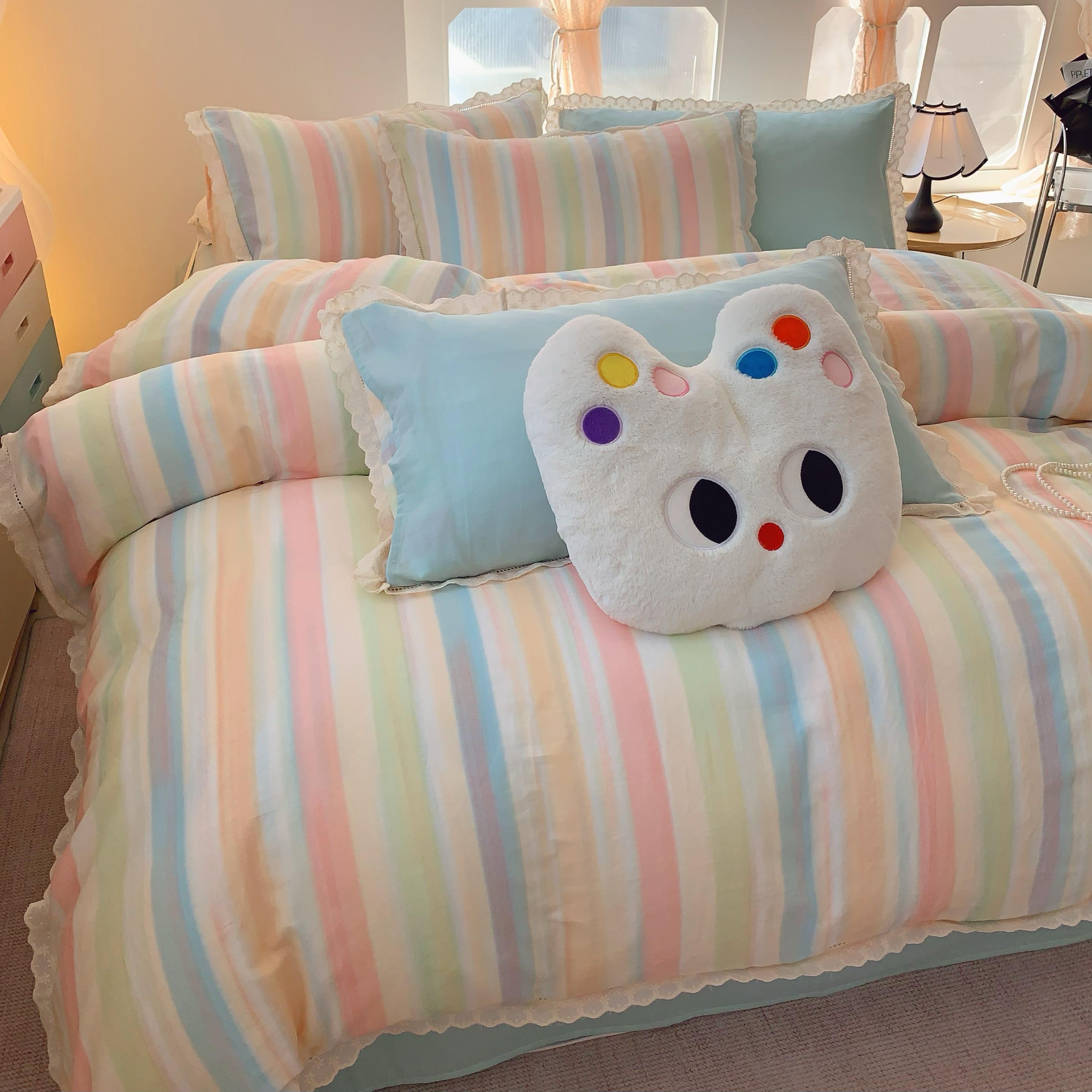 (总)奈萝家纺 2025新款全棉蕾丝花边床盖三件套四件套纯棉花边夏被,呆呆熊,花语绿,花语紫,柠檬,蔷薇,西瓜兔,夏蓝,夏梦,夏之语,小花熊,樱花