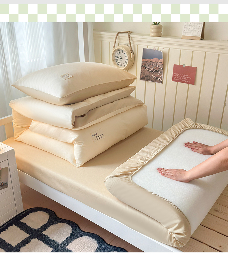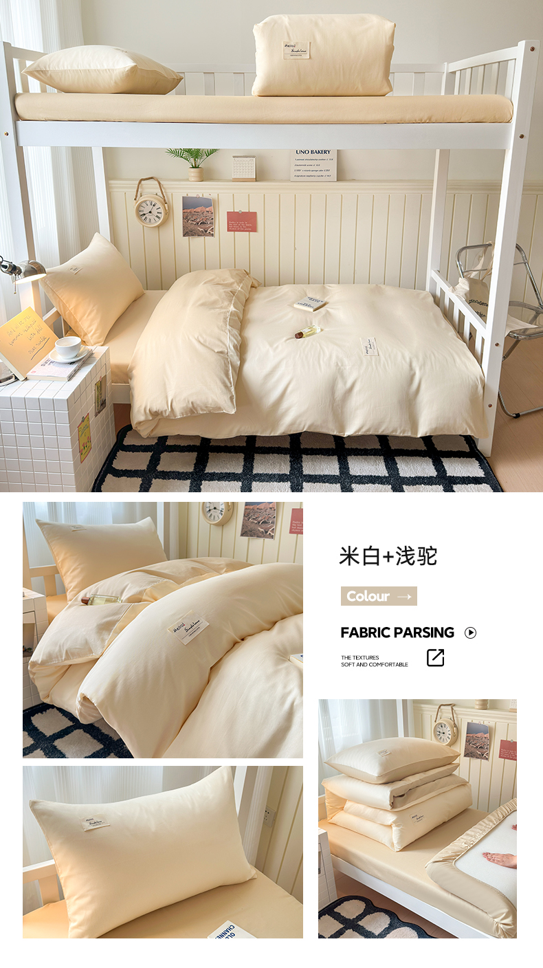 当前位置: 91家纺网 > 商品网购 > 床品套件 > 三件套 > 曼之夏 2025新款全棉拼色纯色宿舍学生三件套 米白+浅驼