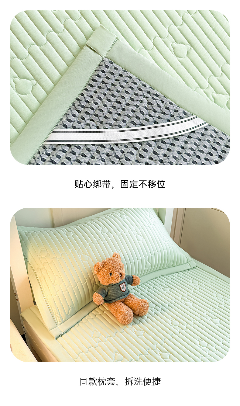 当前位置: 91家纺网 > 商品网购 > 床垫/床褥 > 普通床垫 > 雯豆家纺 2025新款学生宿舍夹棉床褥薄垫子上下铺床单人床护垫 爱心熊-床褥款清雅绿