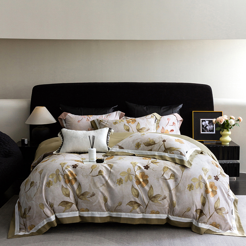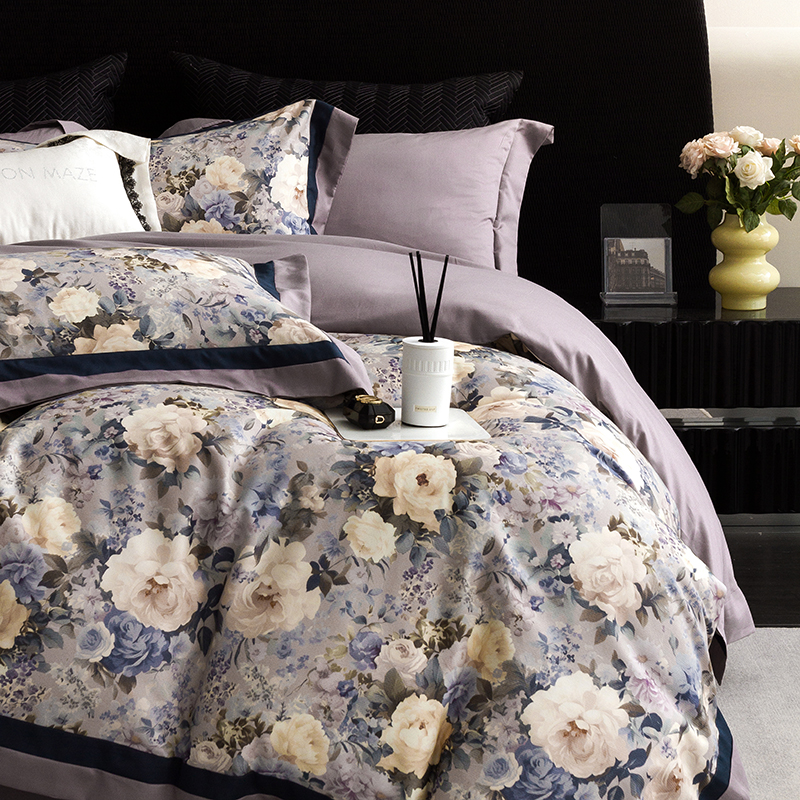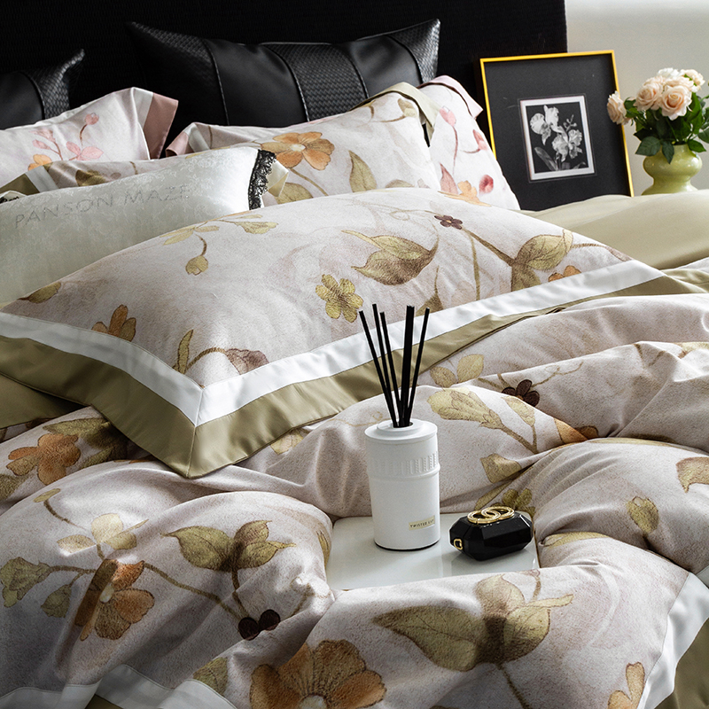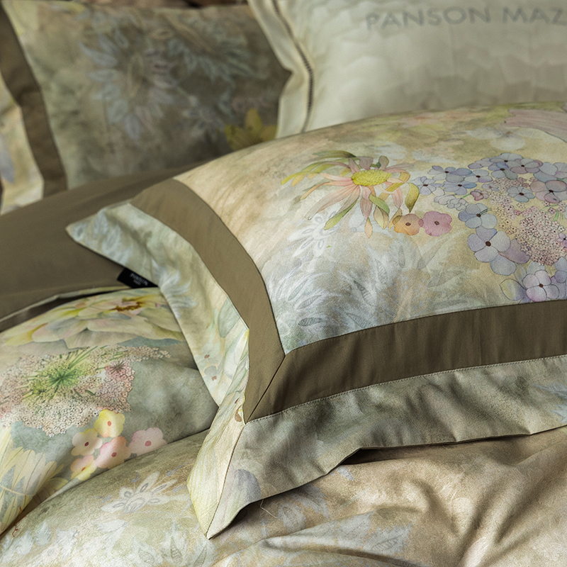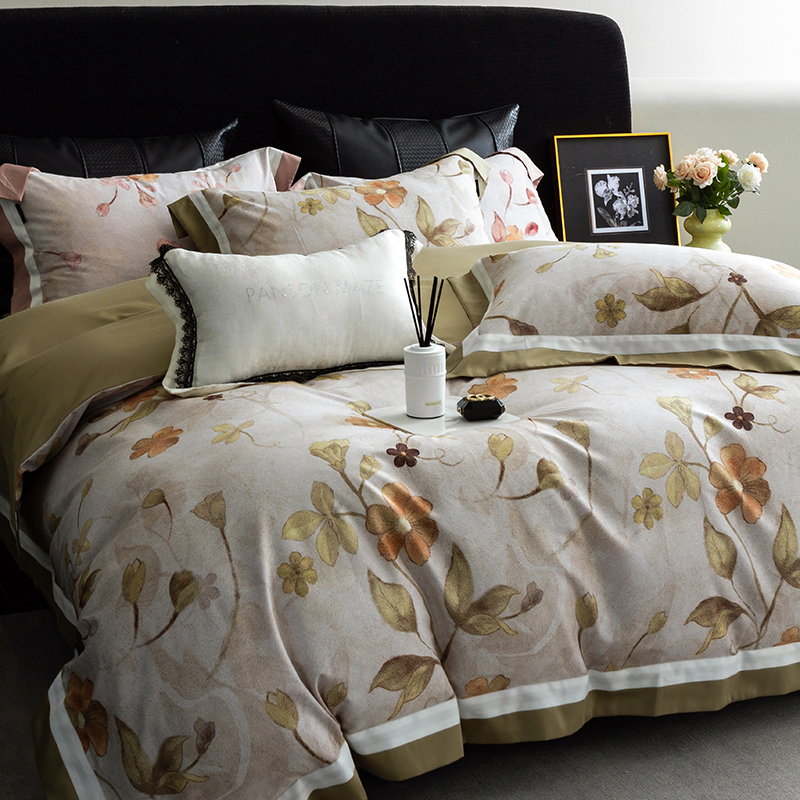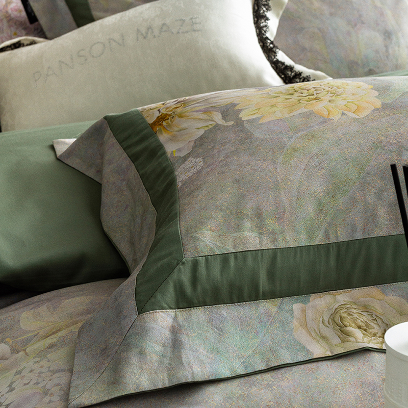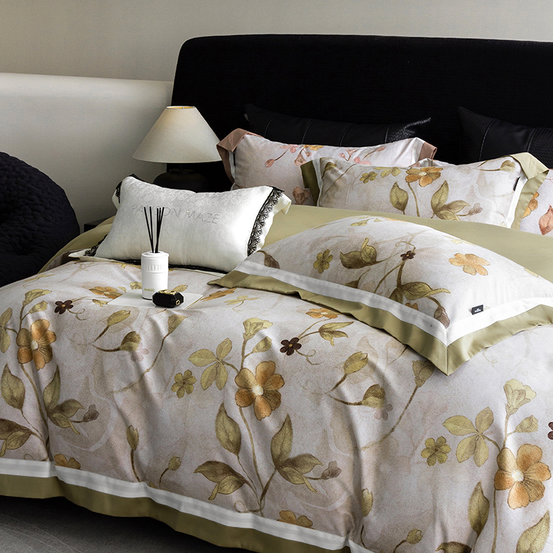 当前位置: 91家纺网 > 商品网购 > 床品套件 > 四件套 > 长绒棉四件套 > 威克凯丽 2024新款长绒棉数码印花100S磨毛双拼四件套 薇洛缇-B松绿C奶白