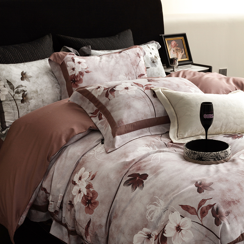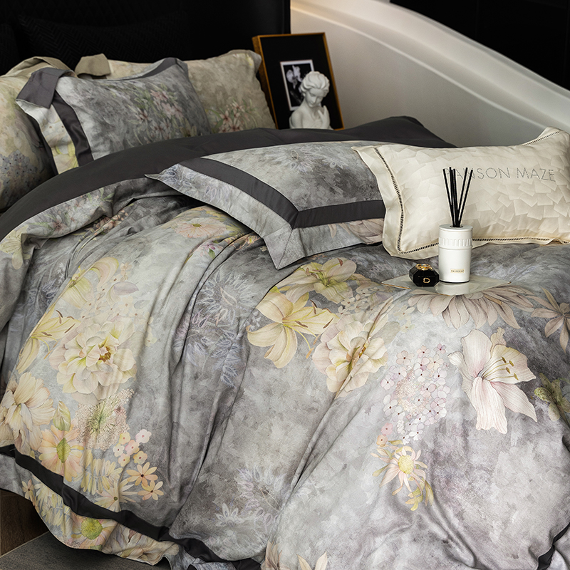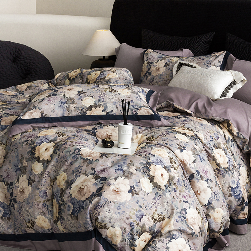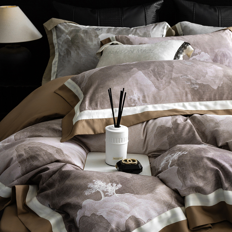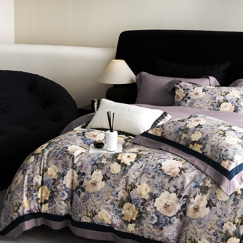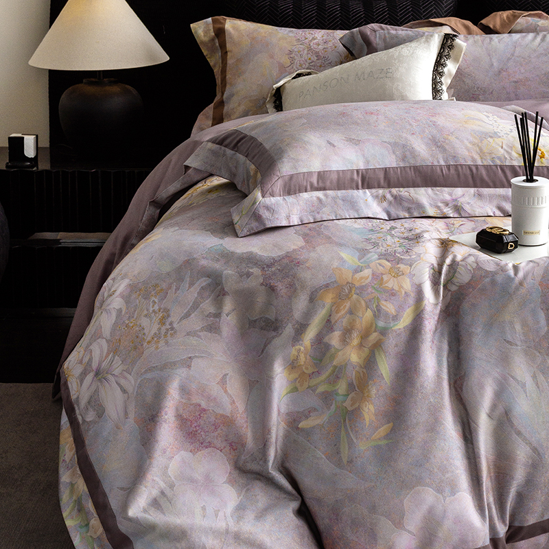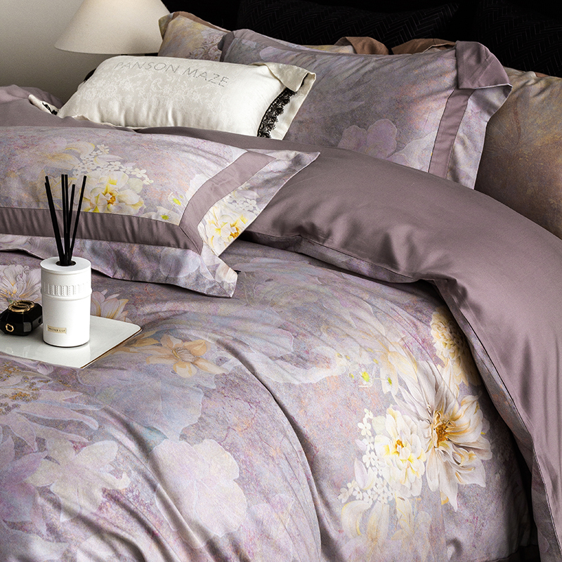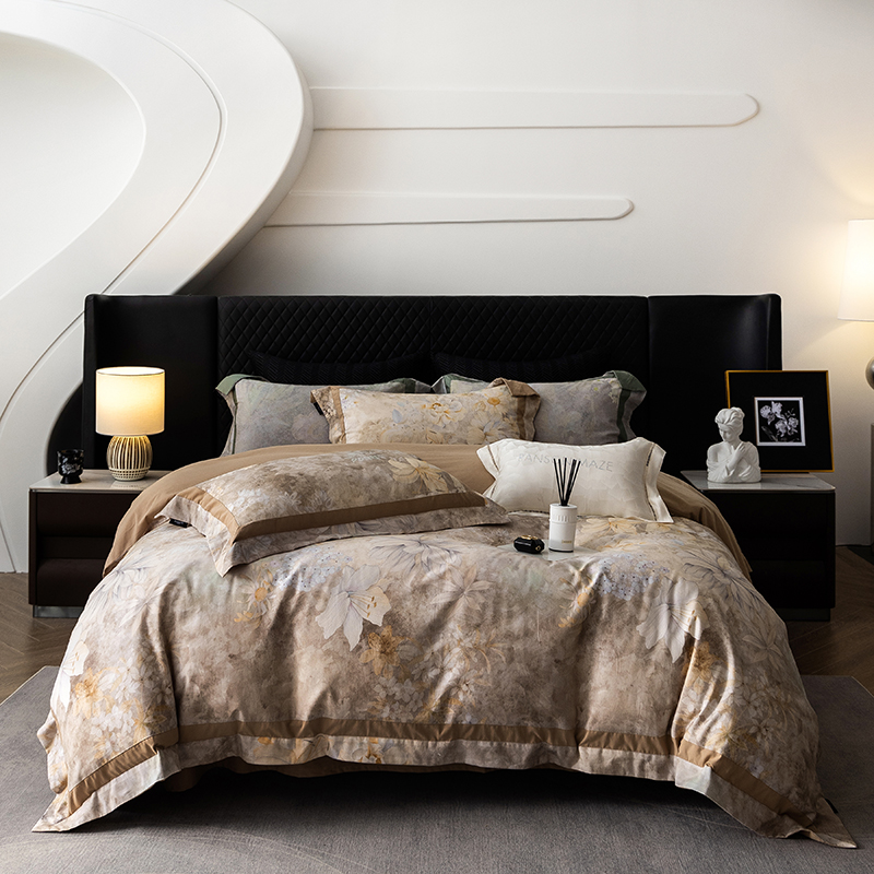 当前位置: 91家纺网 > 商品网购 > 床品套件 > 四件套 > 长绒棉四件套 > 威克凯丽 2024新款长绒棉数码印花100S磨毛双拼四件套 薇洛缇-B松绿C奶白