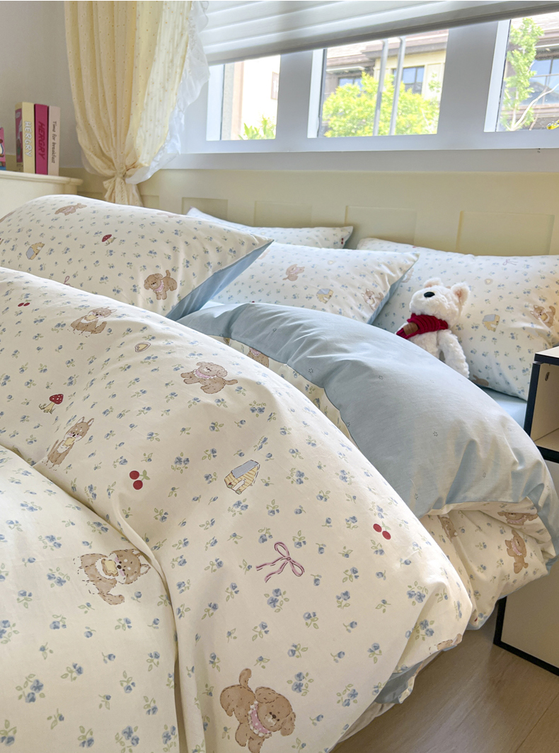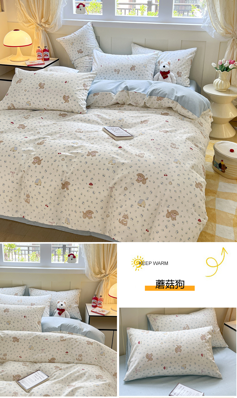 当前位置: 91家纺网 > 商品网购 > 床品套件 > 四件套 > 全棉普通四件套 > 麦伦家居 2025春夏新款全棉纯棉斜纹40s13372系列-小清新卡通 蘑菇狗