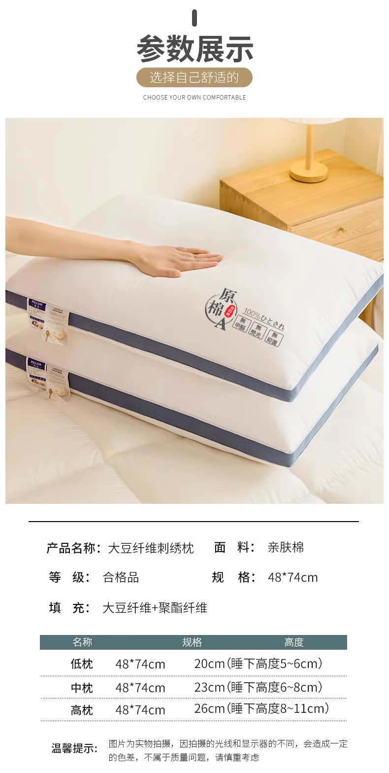 当前位置: 91家纺网 > 商品网购 > 枕头/枕芯/保健枕/颈椎枕 > 普通枕芯 > 蝶飞舞 2025新款抗菌防螨原棉大豆枕头枕芯亲肤磨毛枕芯 原棉大豆枕 原棉大豆枕-蓝色/900g 48*74cm