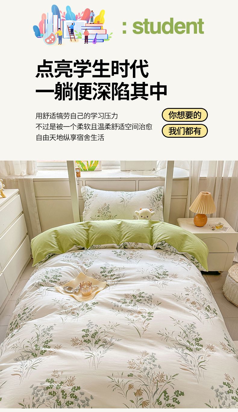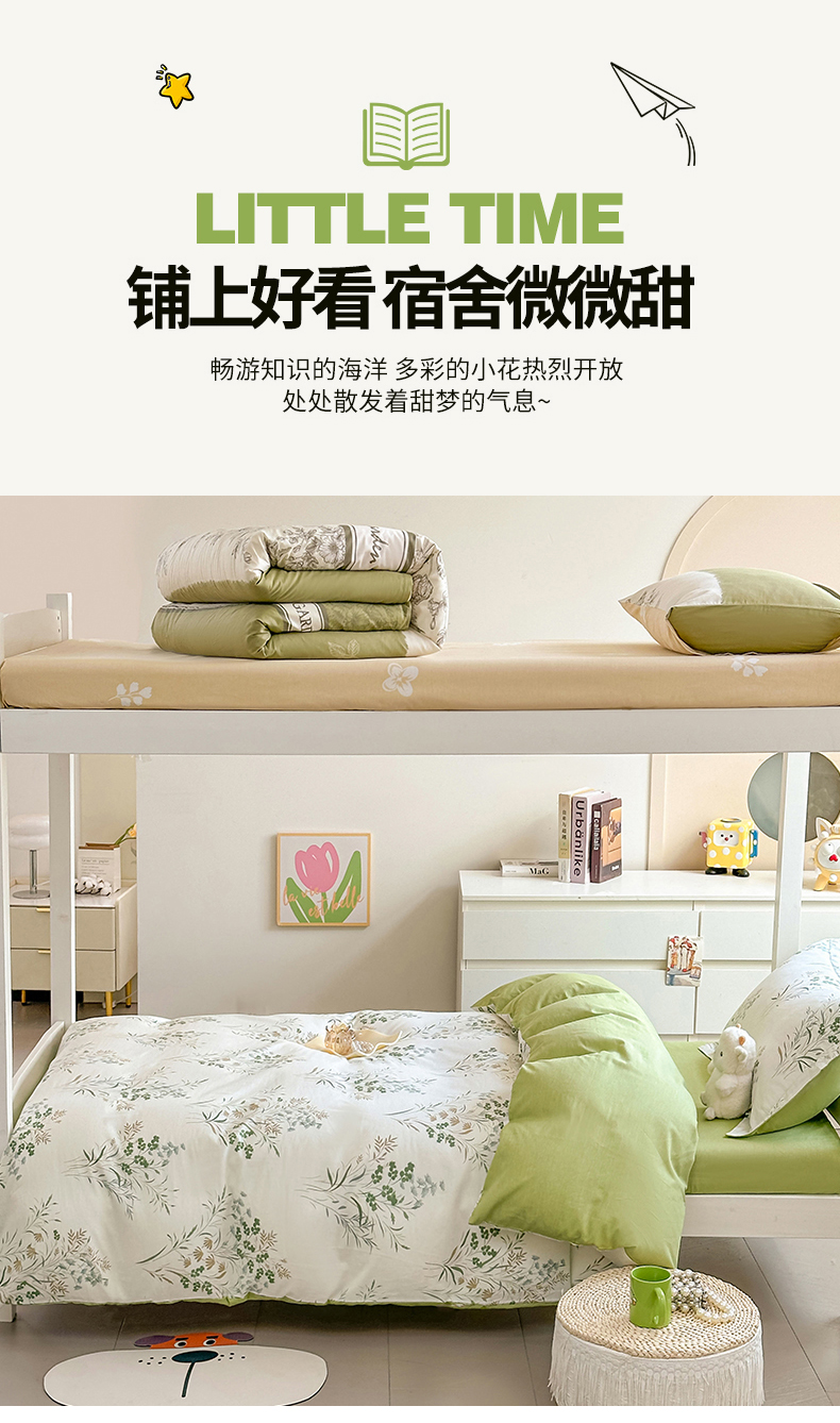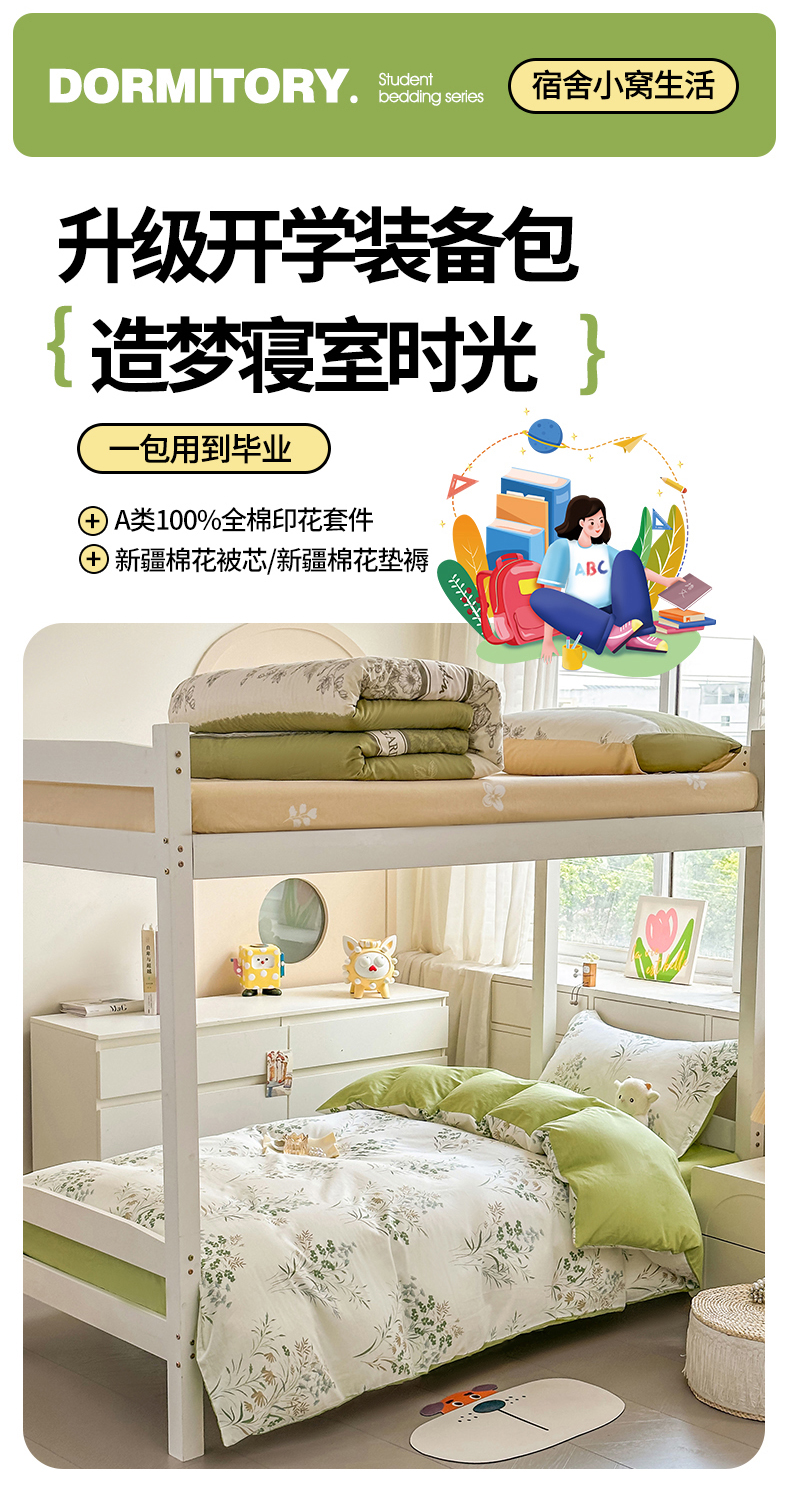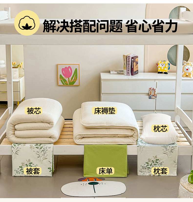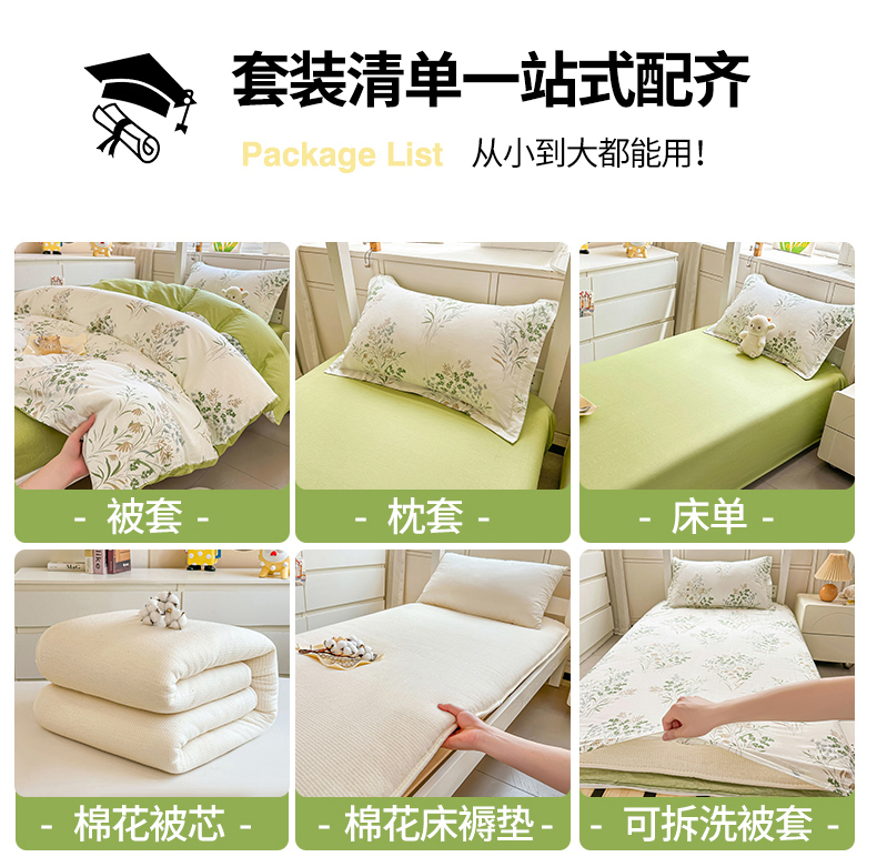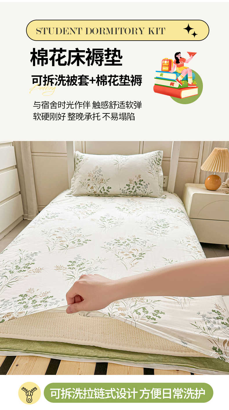 商品名称:西域种棉人·千百笠 2025新款全棉纯棉六件套大学生宿舍100%新疆棉花被子被褥一整套枕头床垫三件套 叶莱婉香