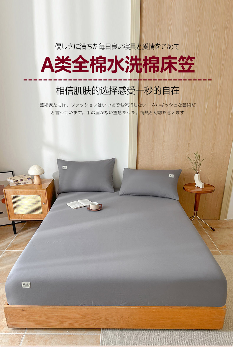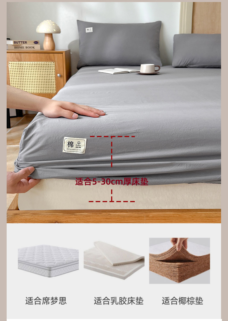 暖芯优选 2025新款40S13376纯色全棉水洗棉单品系列床笠单件-单床笠 深灰