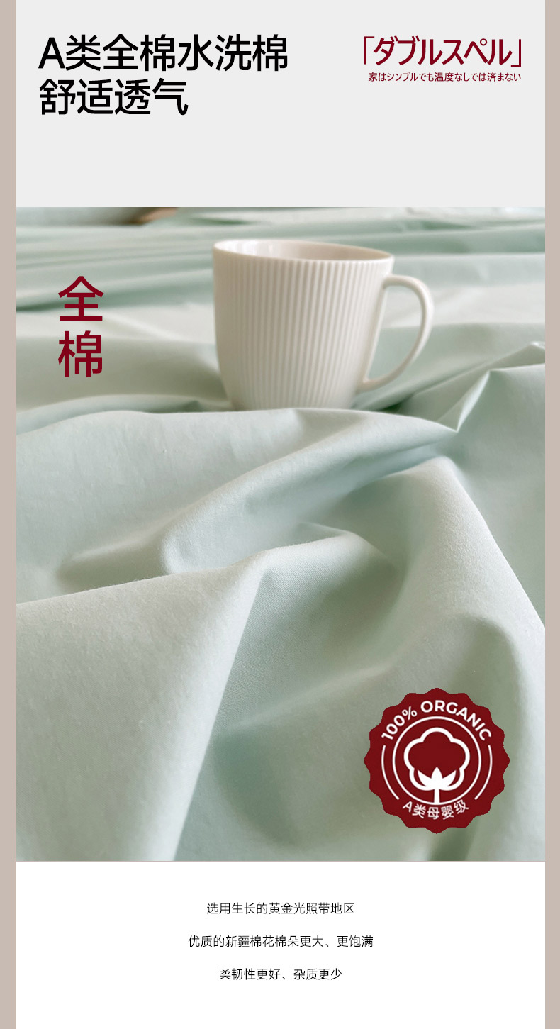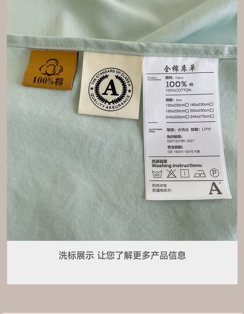 商品名称:暖芯优选 2025新款40S13376纯色全棉水洗棉单品系列床单单件-单床单 浅绿