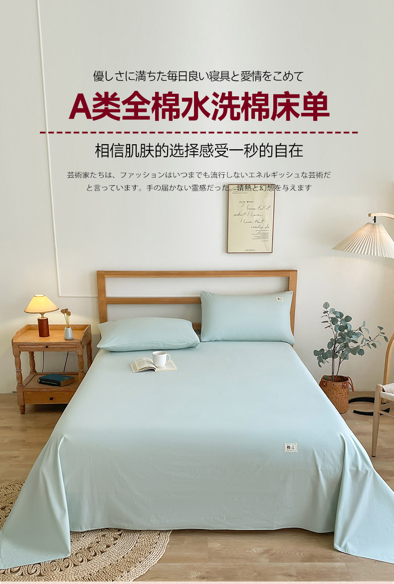 暖芯优选 2025新款40S13376纯色全棉水洗棉单品系列床单单件-单床单 浅绿