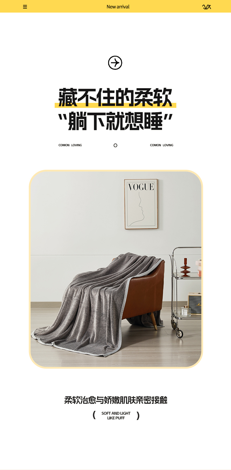(总)馨米莱家纺 2024新款塔芙蓉多功能盖毯,灰色,芥绿,咖色,米色,深灰,雾蓝,玉粉,紫色