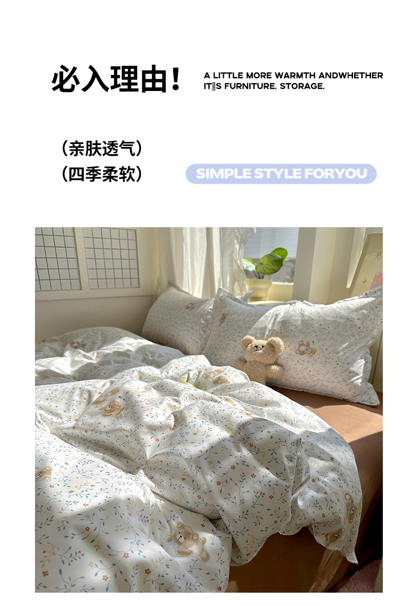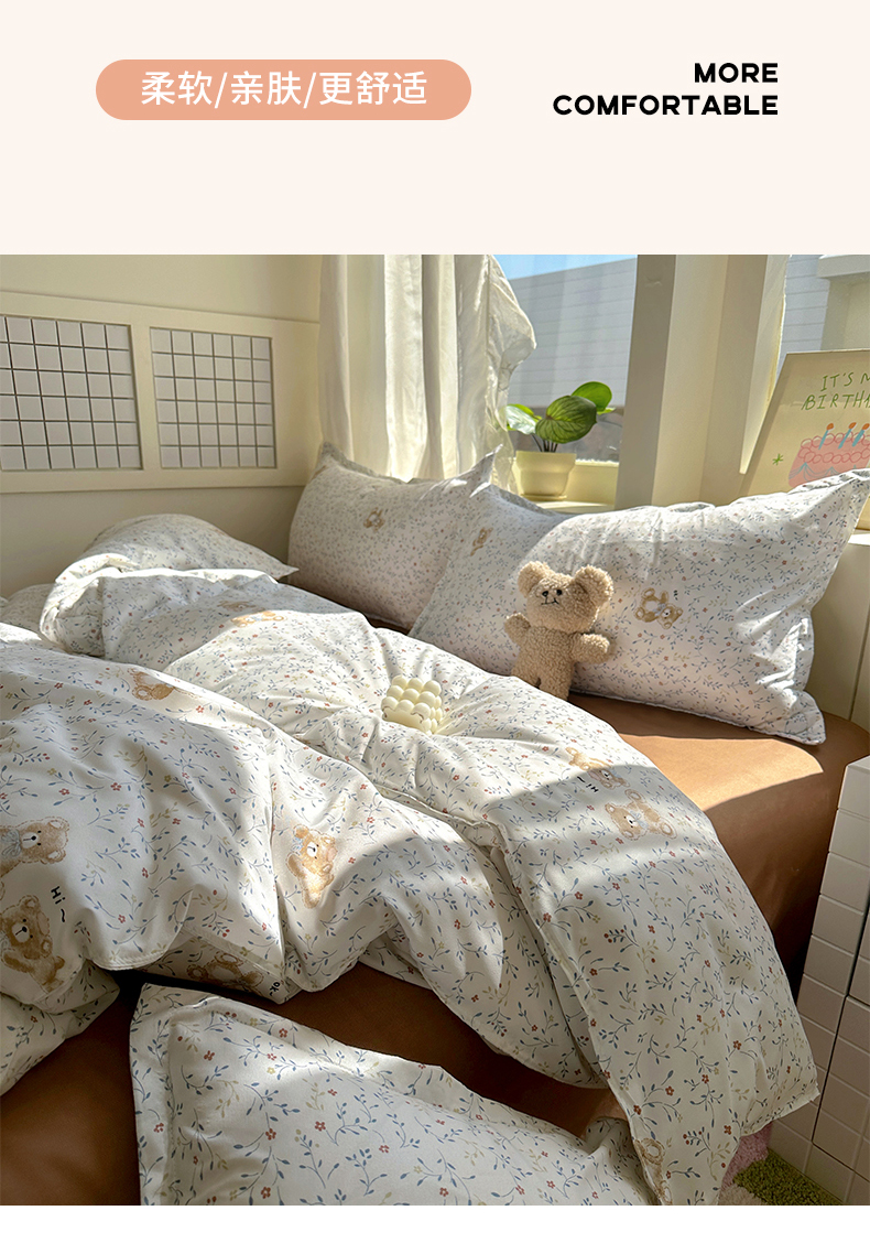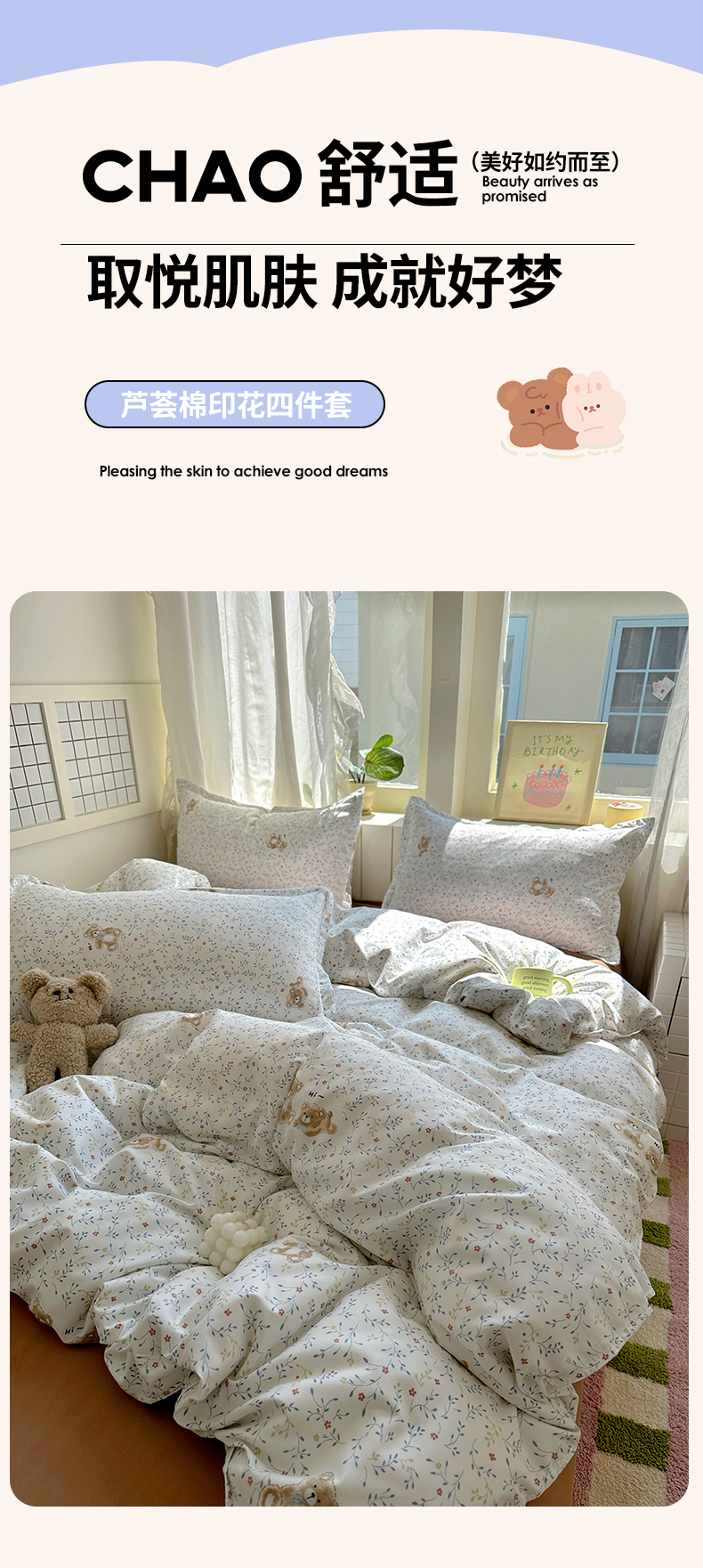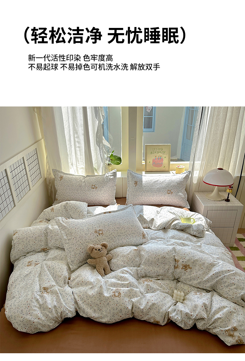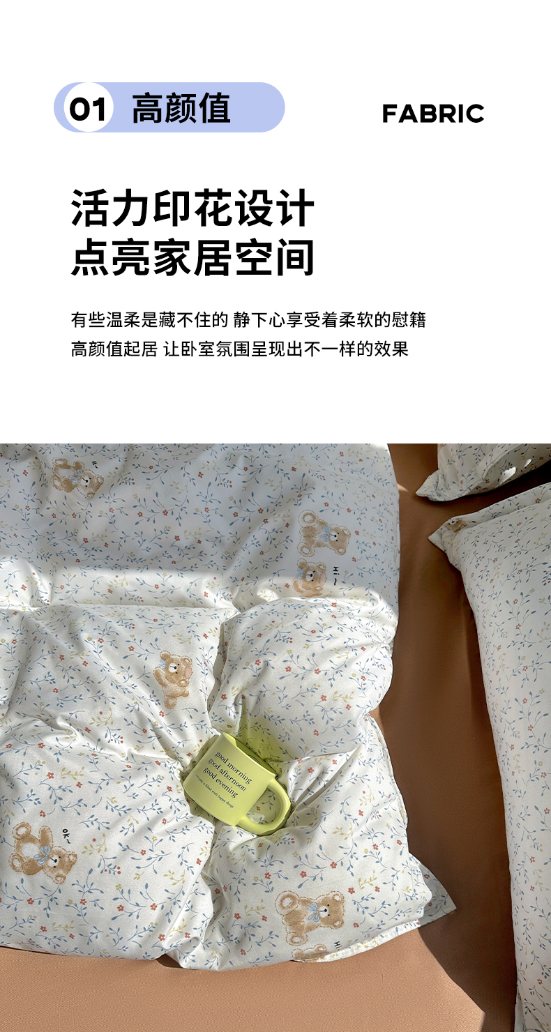 商品名称:宏源家纺 2025新款芦荟棉印花亲肤四件套 熊仔仔